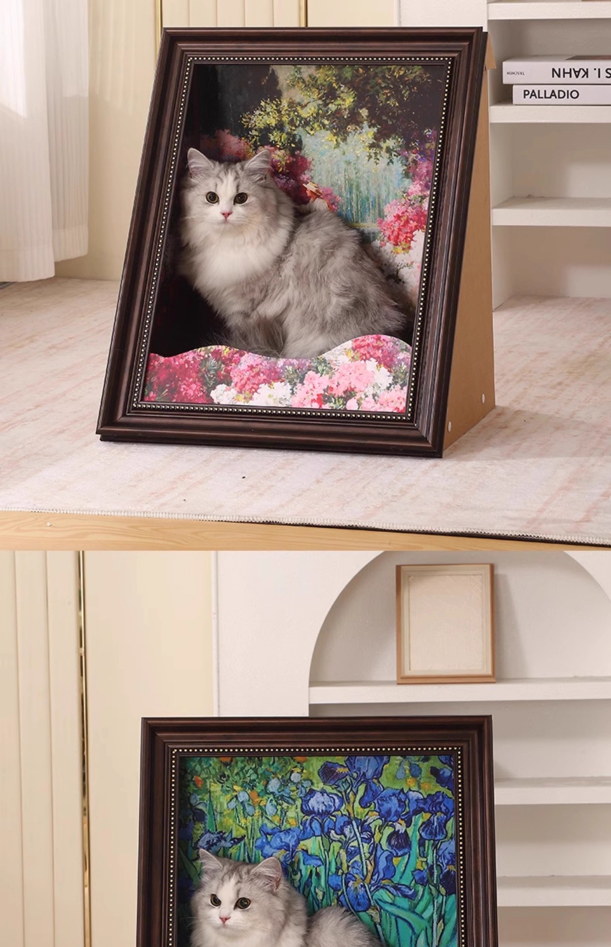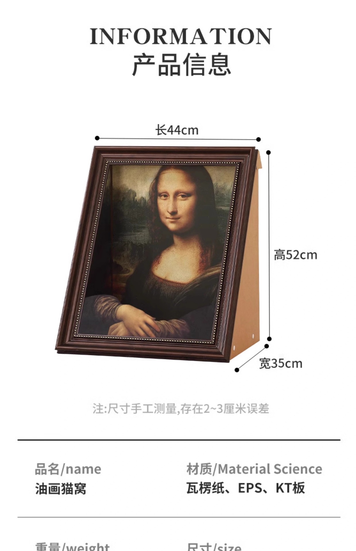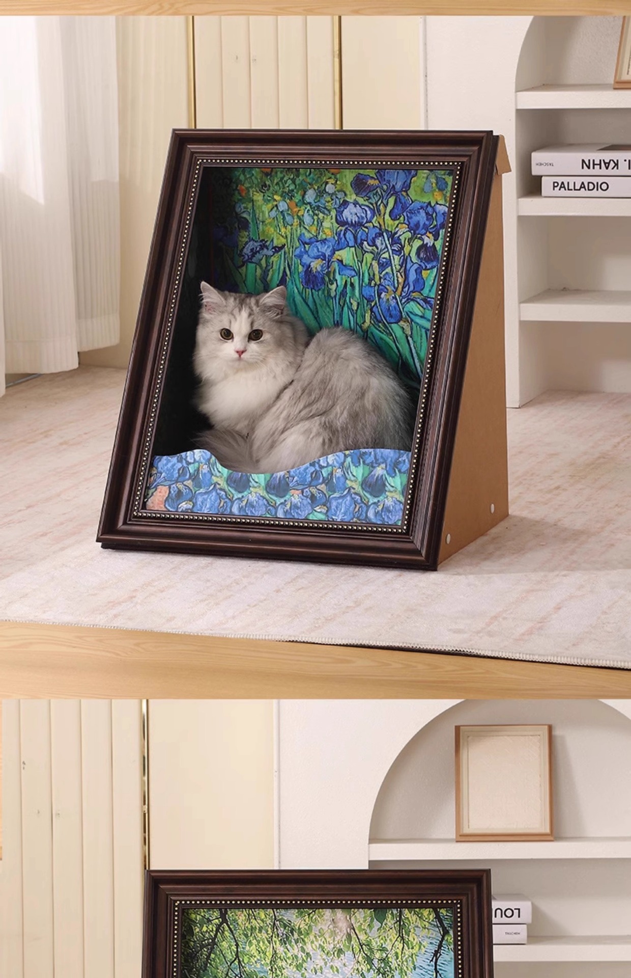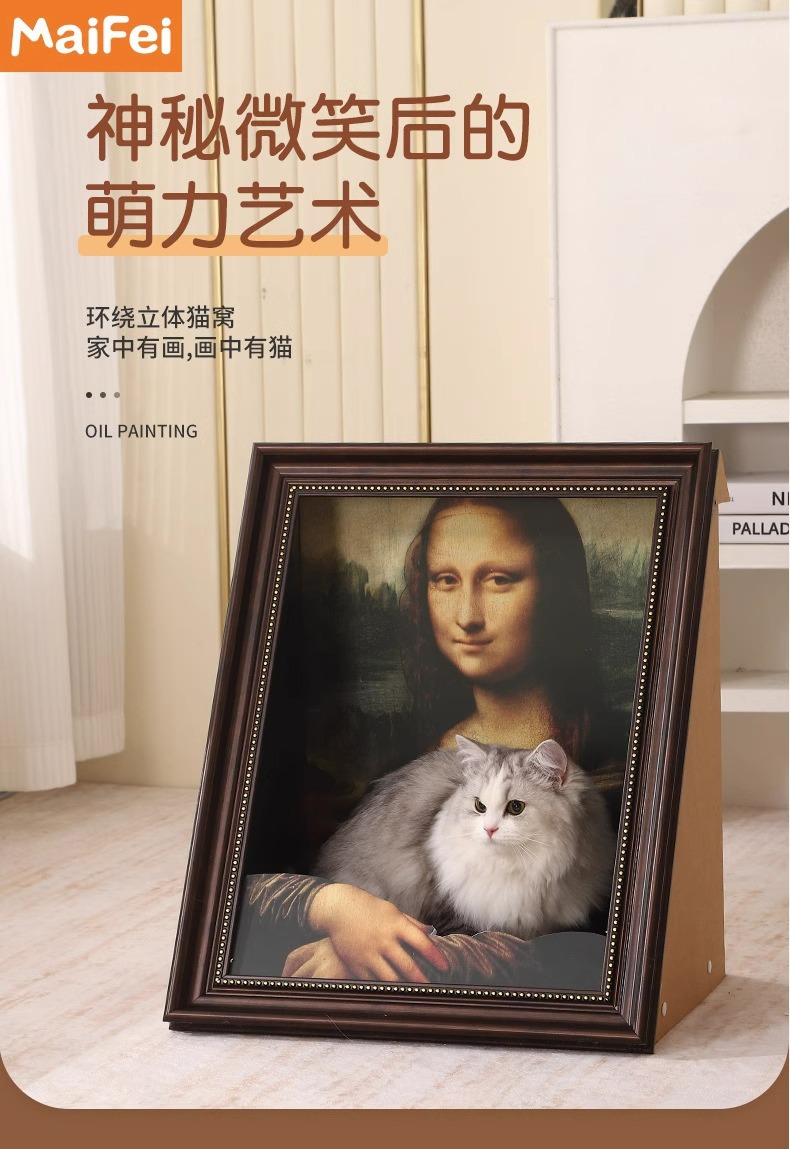 모나리자 고양이 둥지 고양이 둥지 고양이 긁기 보드 유화 거울 사진 프레임 고양이 둥지 폐쇄 안전 고양이 집 고양이 장난감