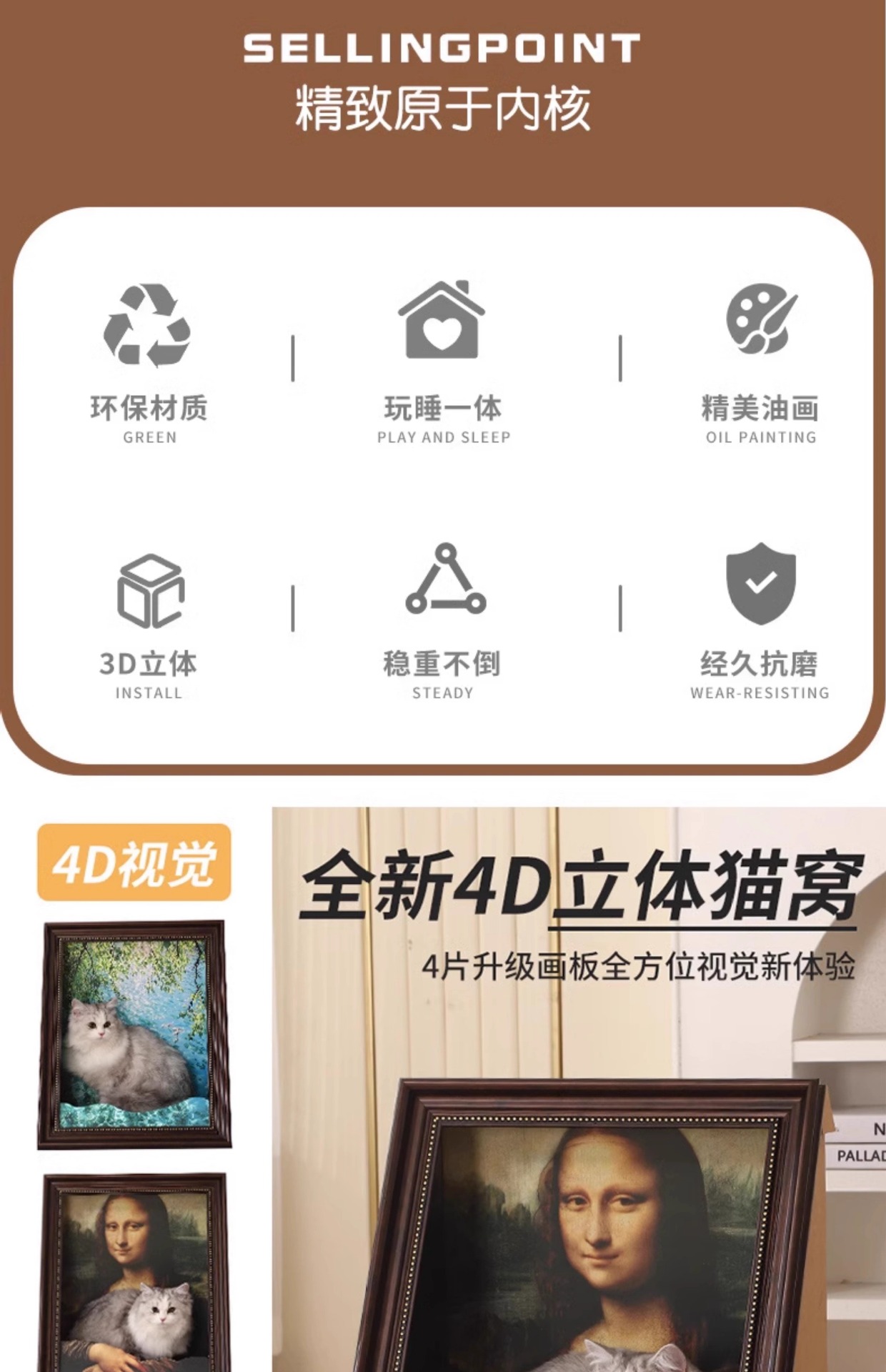 모나리자 고양이 둥지 고양이 둥지 고양이 긁기 보드 유화 거울 사진 프레임 고양이 둥지 폐쇄 안전 고양이 집 고양이 장난감스토어 가기