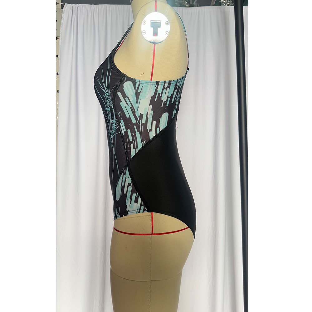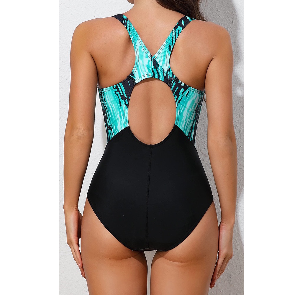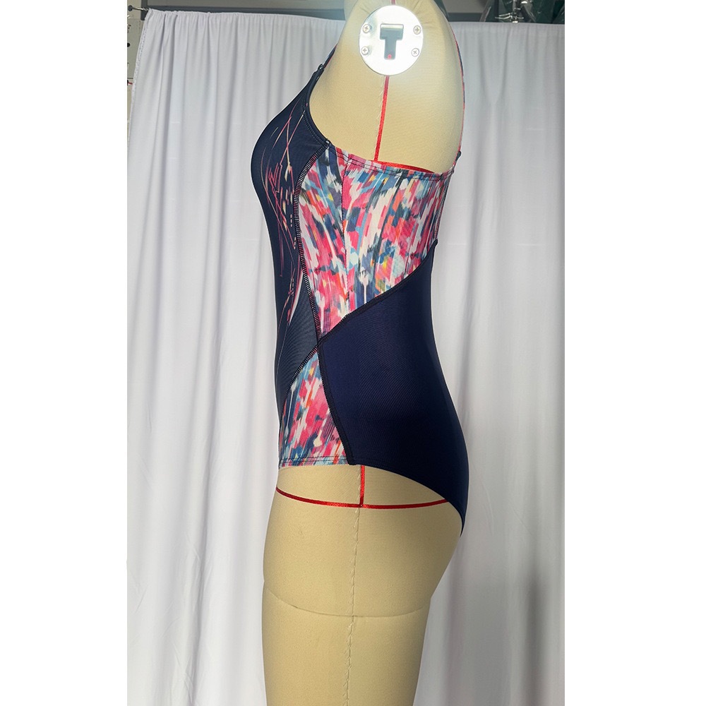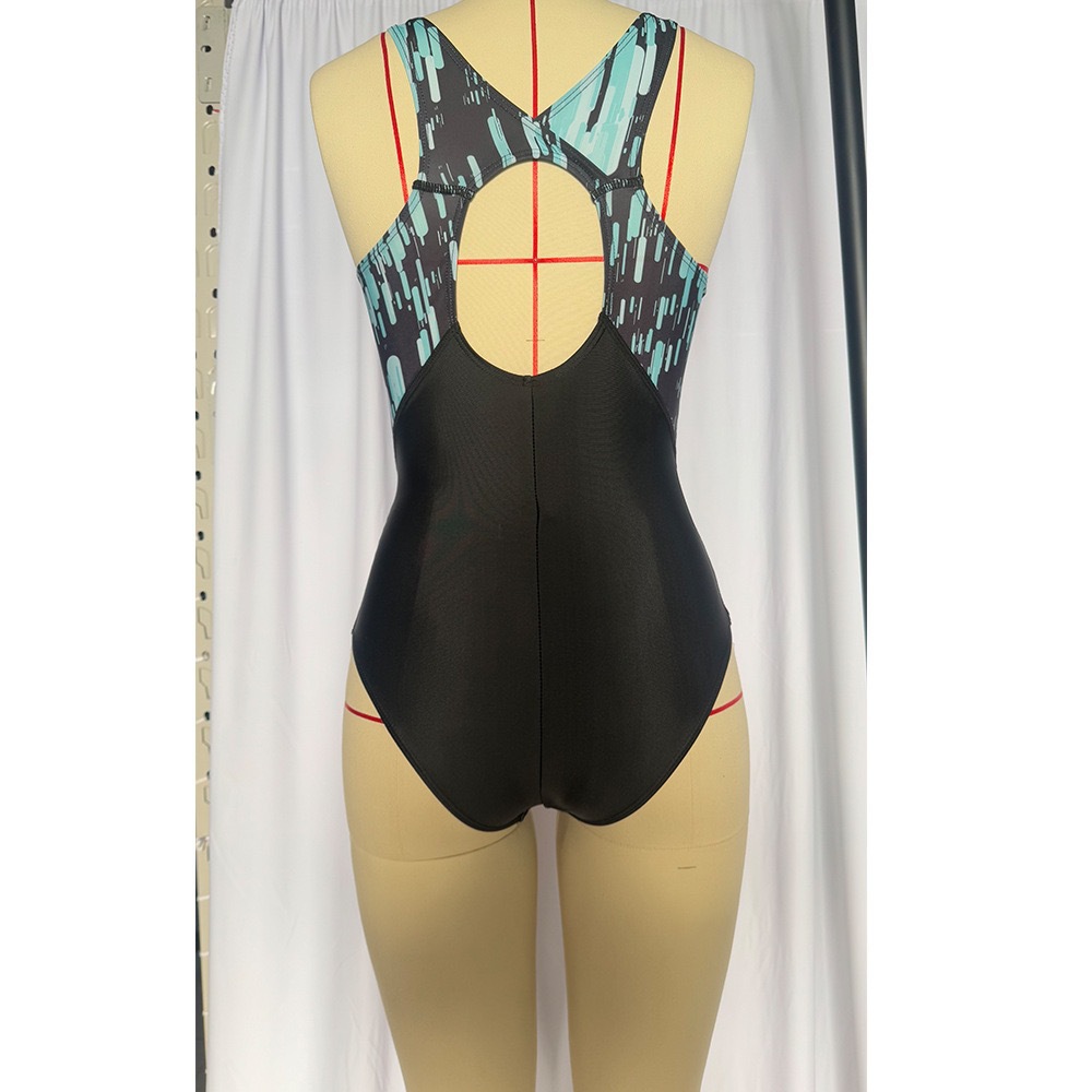 2025 유럽 및 미국 국경을 넘는 대외 무역 원피스 타이트 스플라이스 스포츠 수영복, 삼각형 등받이 없는 다이빙 전문 레이싱 수영복스토어 가기