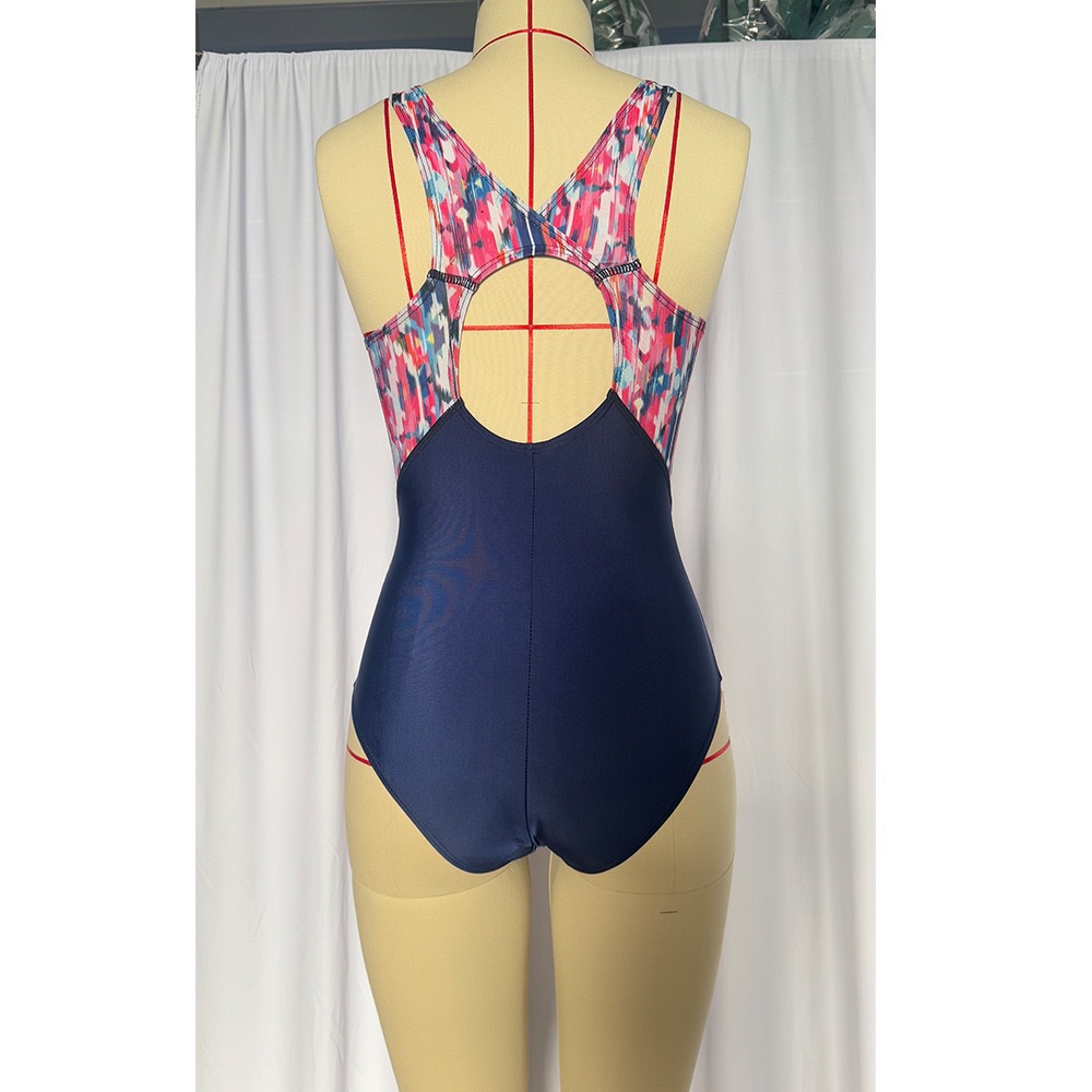 2025 유럽 및 미국 국경을 넘는 대외 무역 원피스 타이트 스플라이스 스포츠 수영복, 삼각형 등받이 없는 다이빙 전문 레이싱 수영복