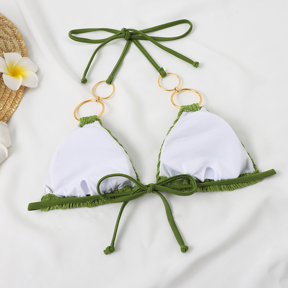 2024 새로운 유럽과 미국의 국경 여성 비키니 솔리드 컬러 특수 패브릭 레이스 업 링 패션 비치 수영복 여성