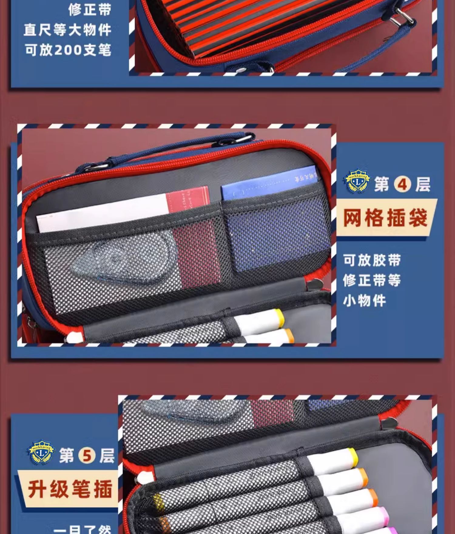 • [새롭게 업그레이드된 가죽/브리티시 블루] 3겹 초대용량 - 무료 4종 자 세트