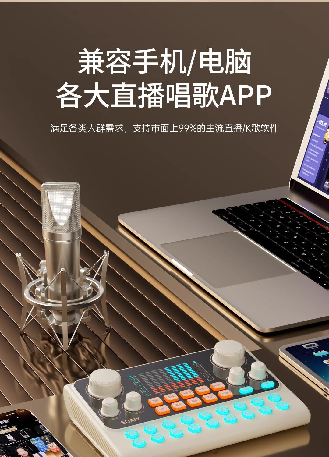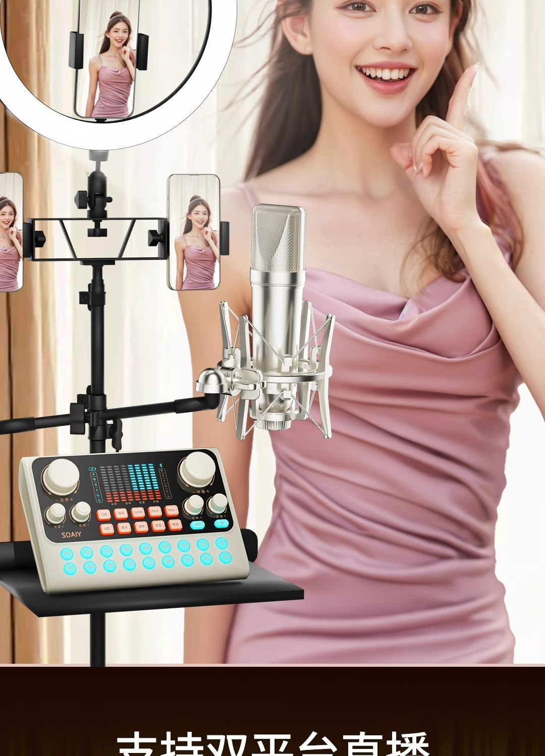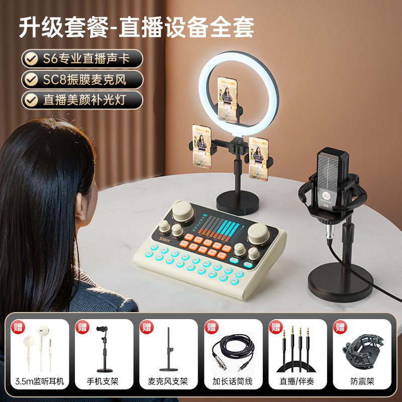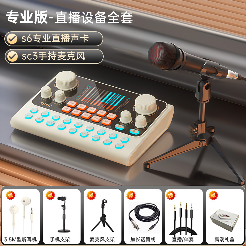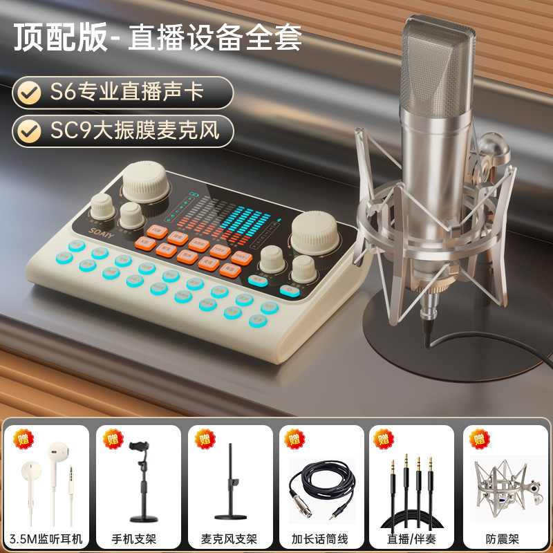 • s6 사운드 카드 + sc9 다이어프램 마이크 벨트 라이트