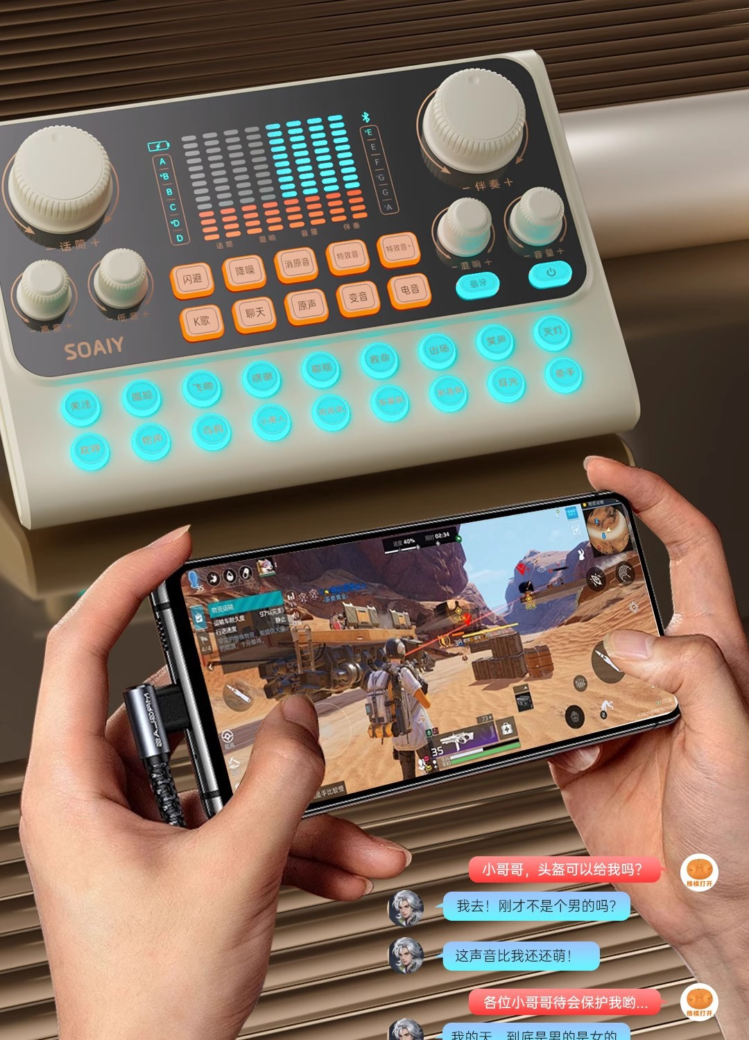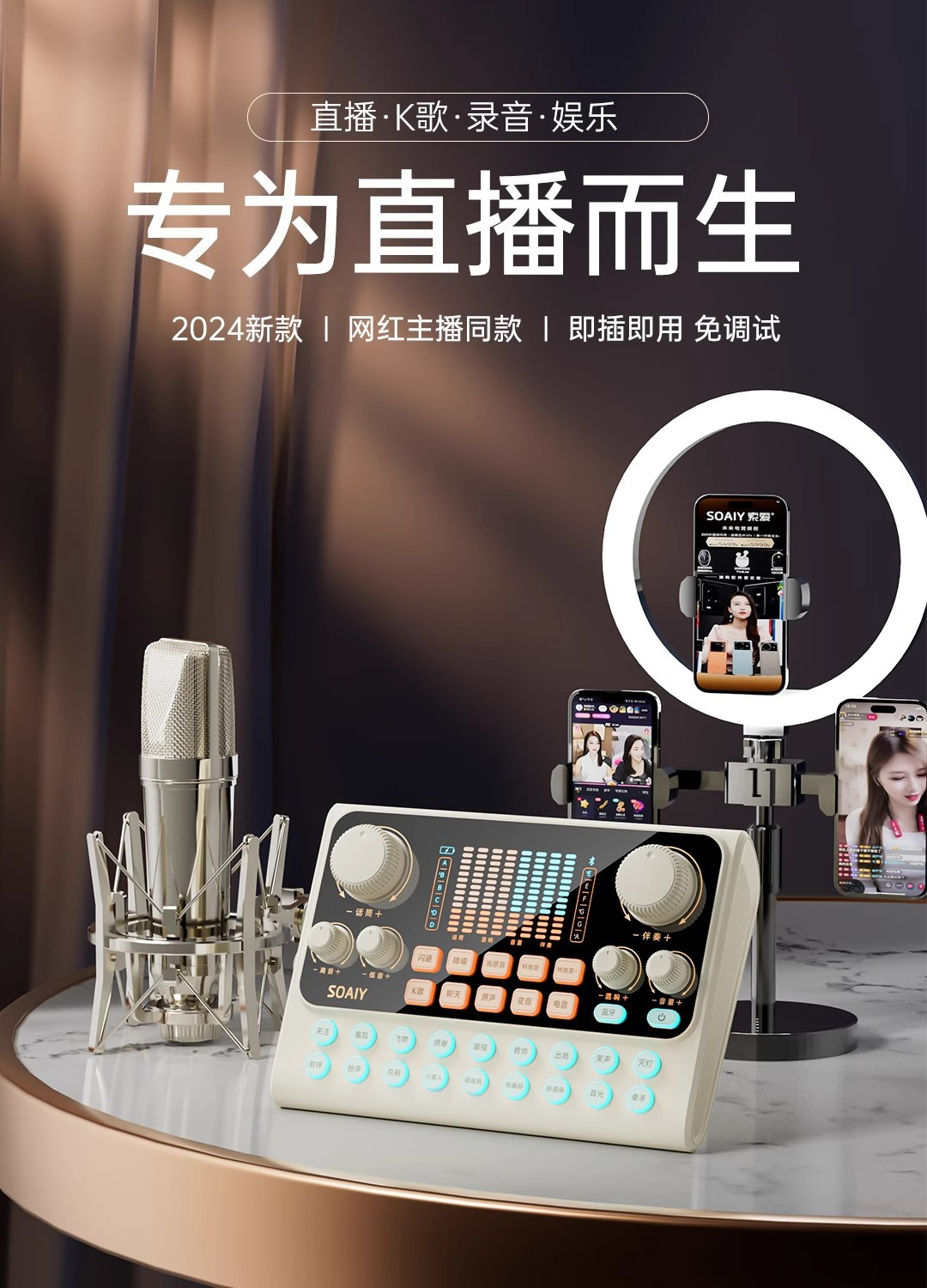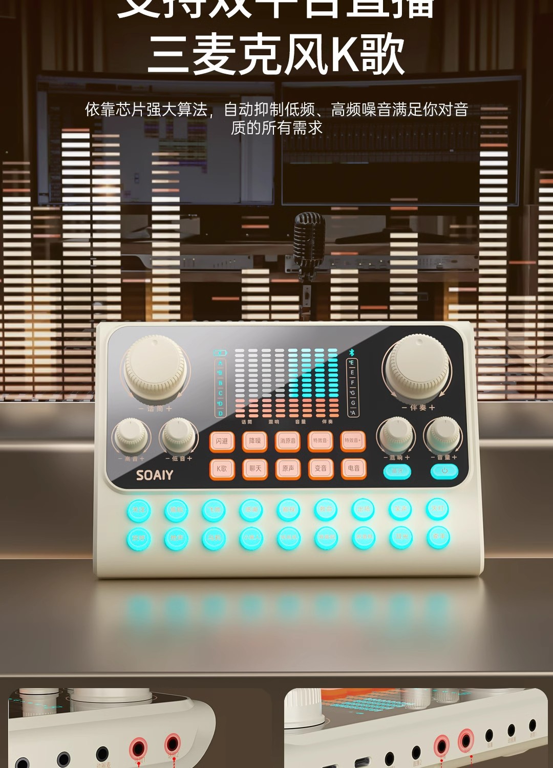 • s6 사운드 카드 + sc9 다이어프램 마이크 벨트 라이트