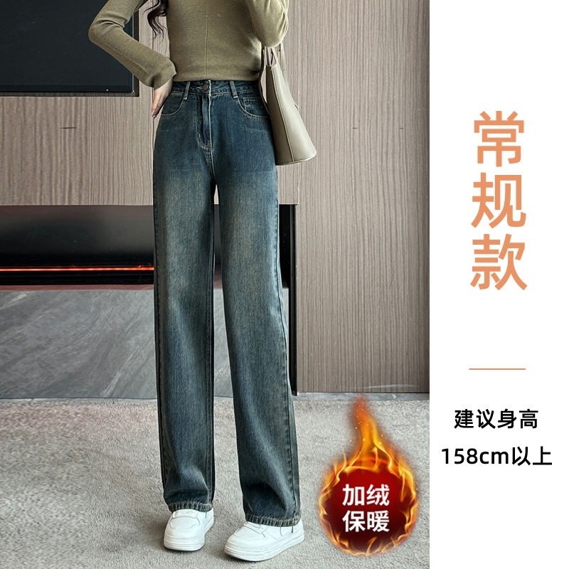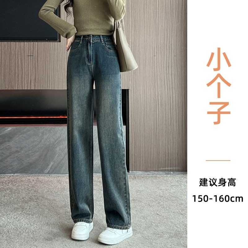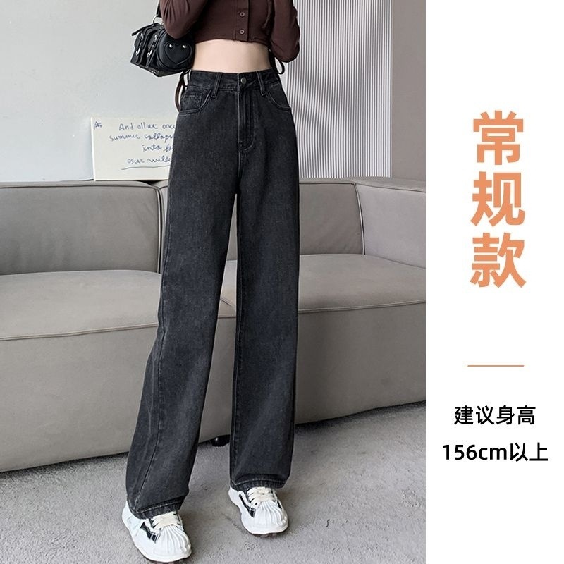 Shanli Dadi [칭찬] cm 작은 검은 회색 청바지 좁은 넓은 다리 바지 여성용 높은 가을과 겨울 느슨한스토어 가기