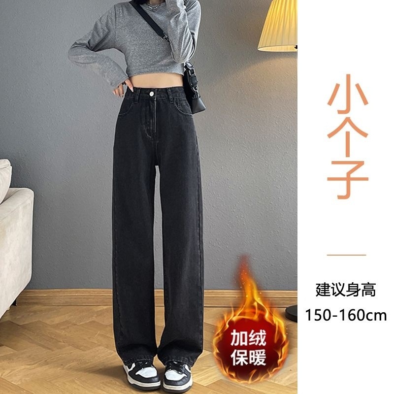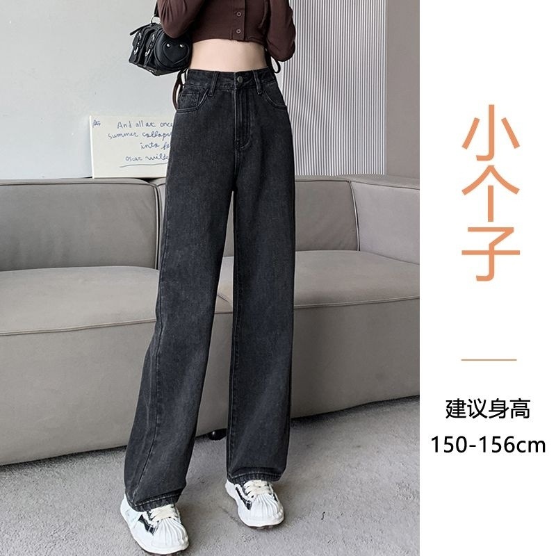 150cm小个子黑灰牛仔裤窄版阔腿裤女145显高秋冬宽松直筒裤子加小