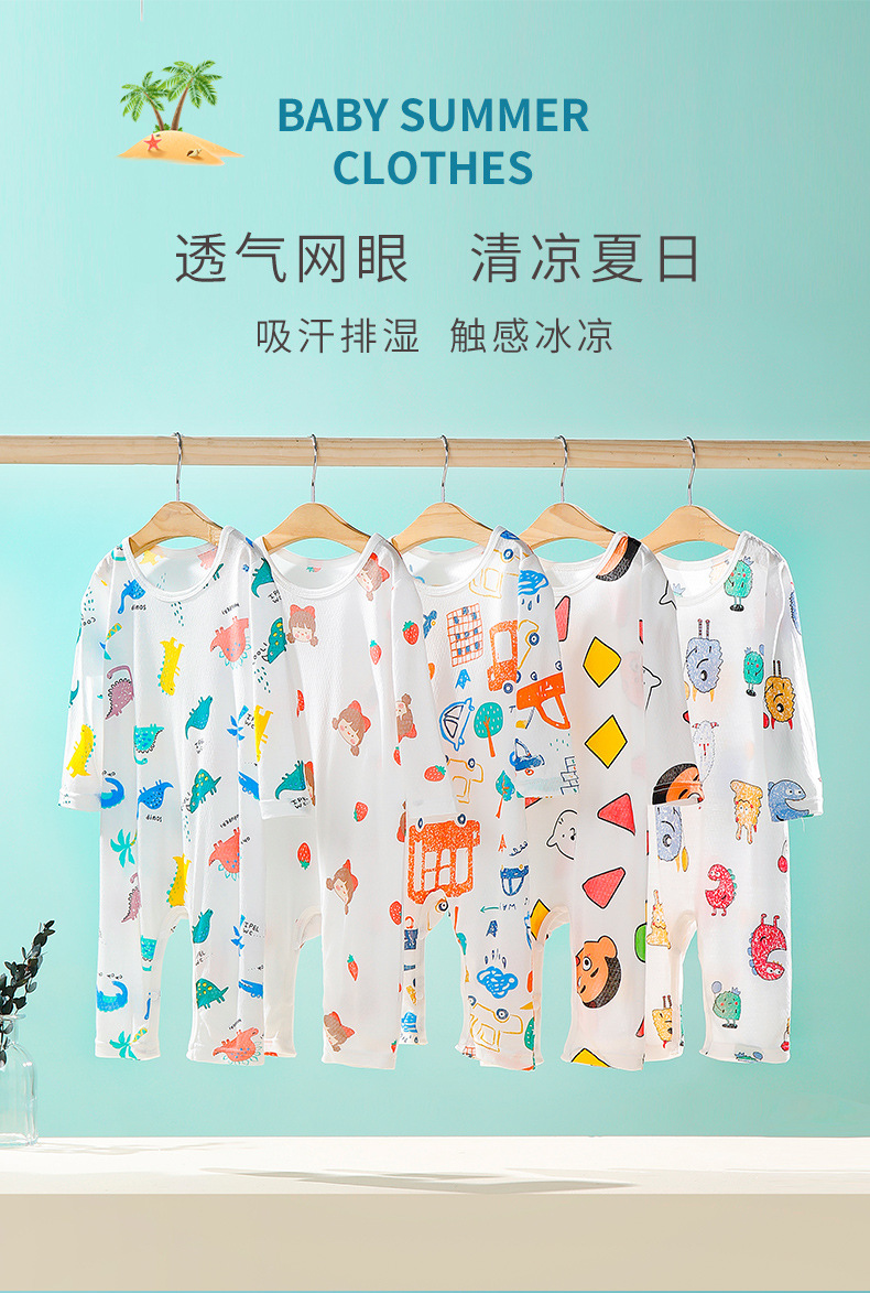 아기 점프 수트 여름 얇은 아동면 실크 에어컨 의류 홈 수면 의류 하 의류 남성과 여성 아기 여름 옷스토어 가기