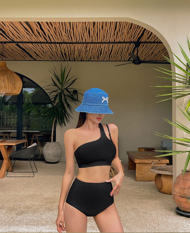 25 개의 새로운 어깨 스포츠 스플릿 수영복 여성의 날씬한 어깨 아름다운 등 작은 조끼 섹시한 높은 허리 배꼽 여성 수영복