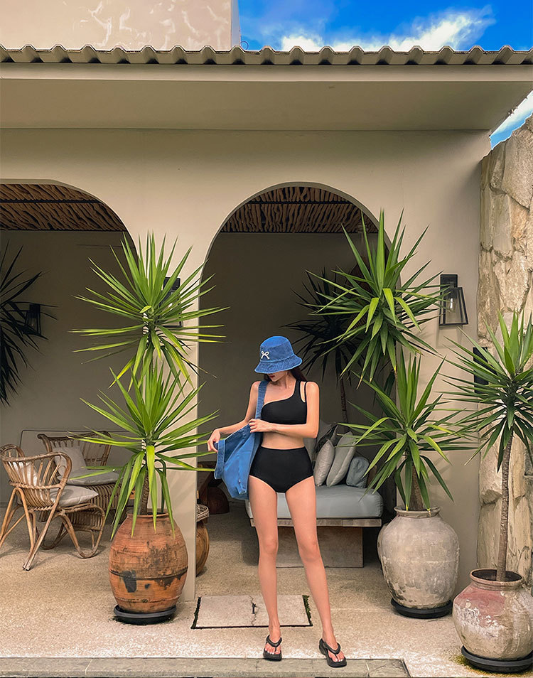 25 개의 새로운 어깨 스포츠 스플릿 수영복 여성의 날씬한 어깨 아름다운 등 작은 조끼 섹시한 높은 허리 배꼽 여성 수영복스토어 가기
