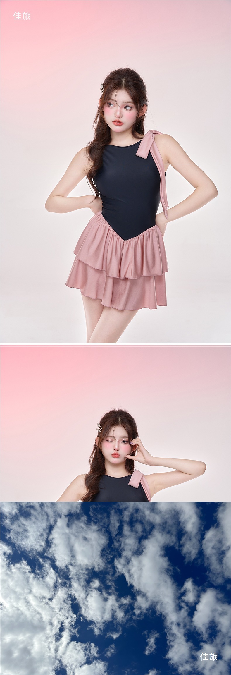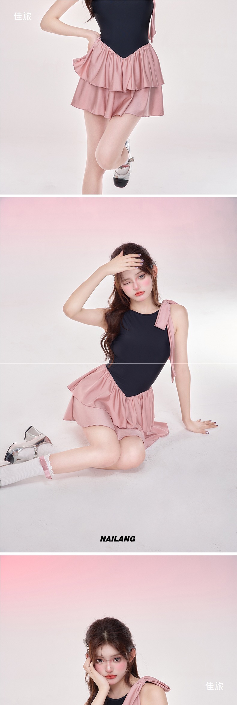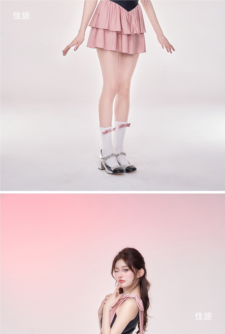 NLANG 수영복 여성 2025 새로운 요정 스커트 스타일 배를 덮는 가슴 패드 작은 가슴 푸시 업 민소매 온천스토어 가기