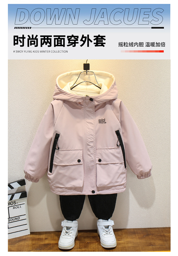 소녀 가을 코트 2025 새로운 어린이 소녀 봄 가을과 겨울 착용 기모 두꺼운 후드 탑 트렌디스토어 가기