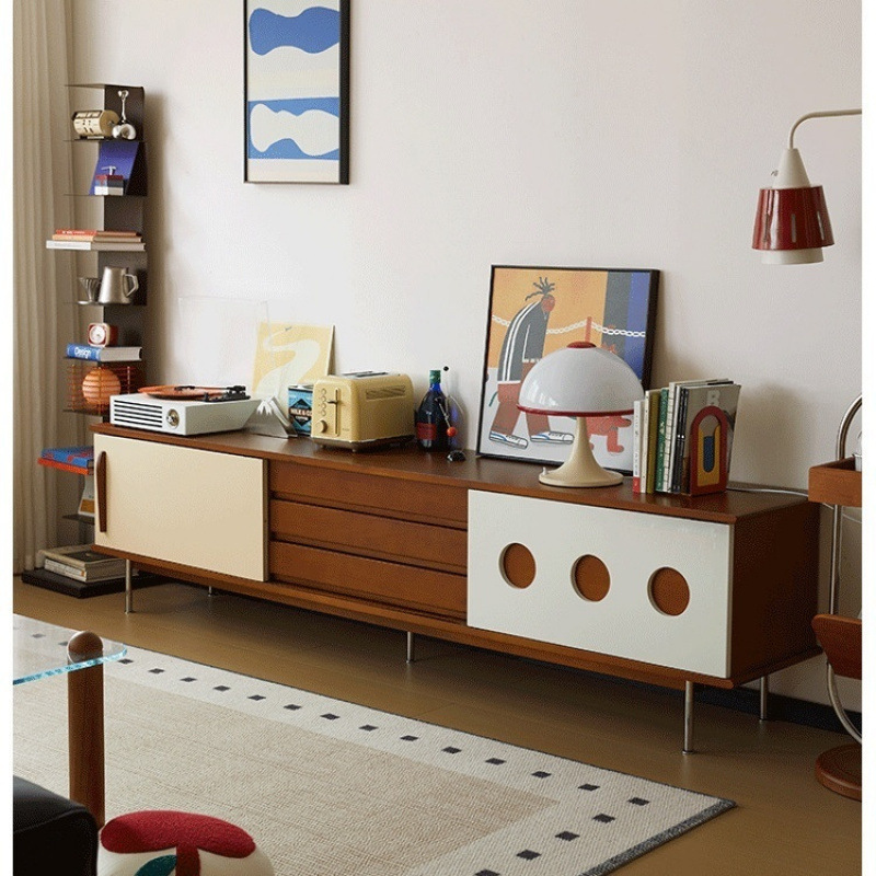 포플러 우드 솔리드 우드 TV 내각 노르딕 레트로 거실 홈 스토리지 현대 작은 아파트 간단한 TV 캐비닛