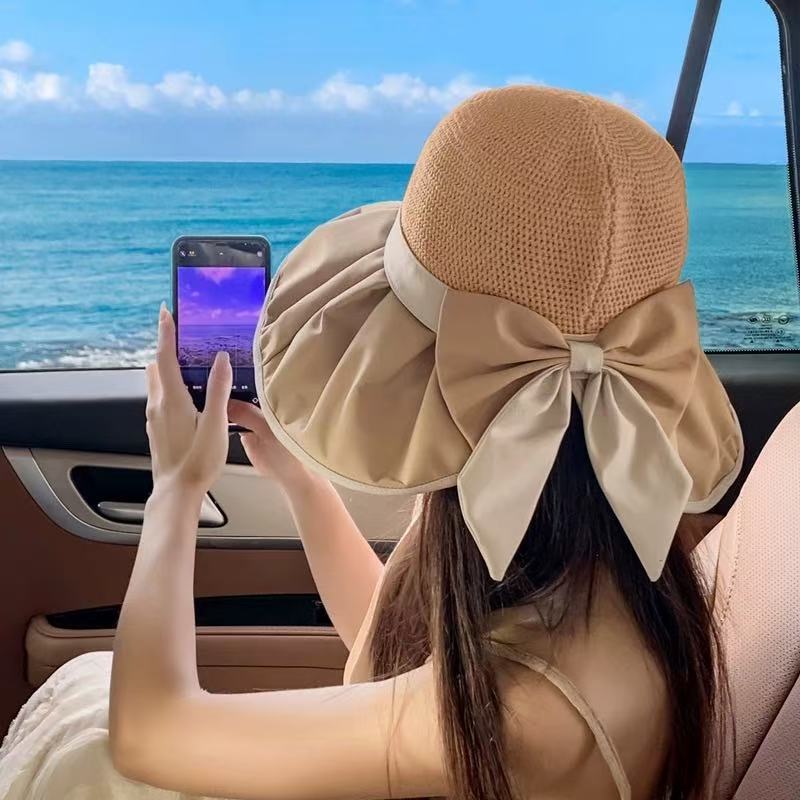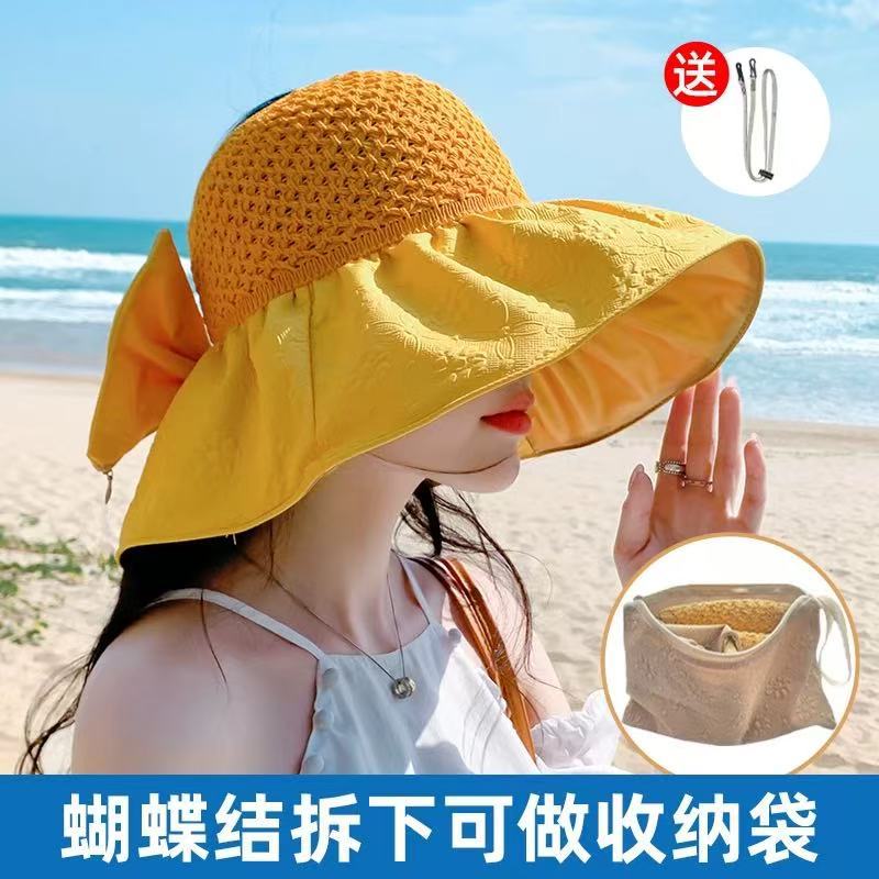 TikTok 폭발성 선 스크린 모자 여성의 안티-UV 태양 모자 접이식 검은 접착제 어부 모자 얼굴을 가리는 큰 브림 태양 모자