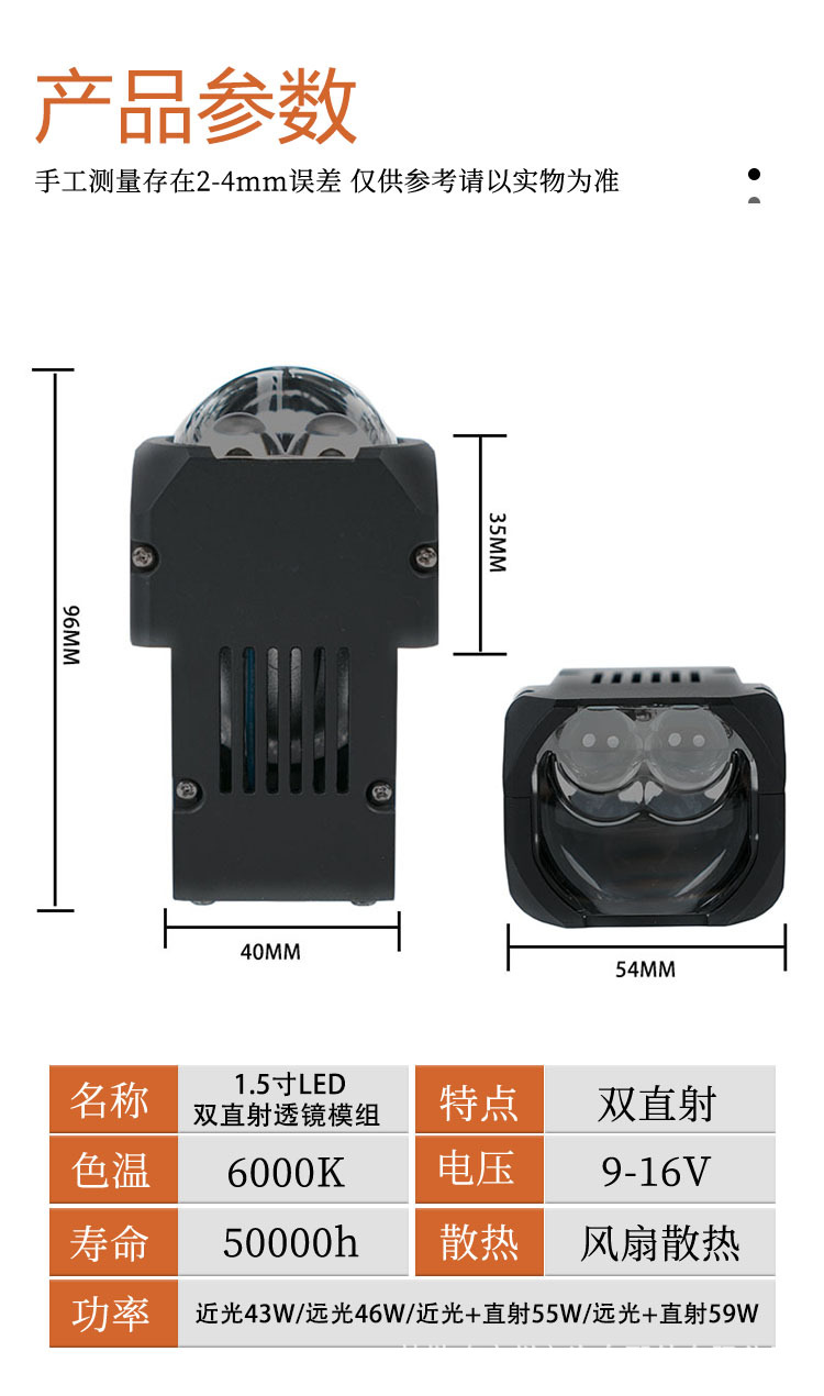 1.5inch 쌍의 직사광 LED 이중광 매트릭스 모듈은 고출력으로 업그레이드되었으며 개조된 자동차 헤드라이트 및 오토바이에 적합합니다.스토어 가기