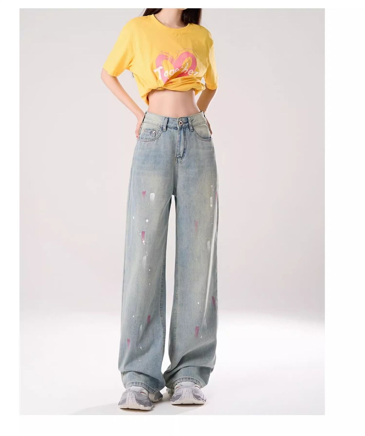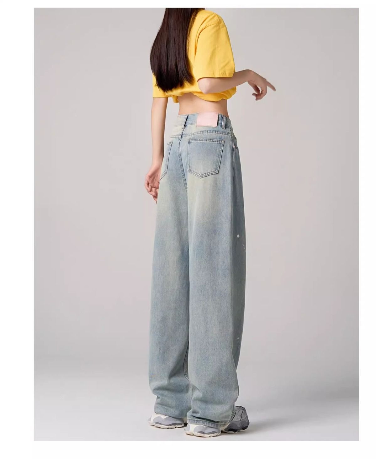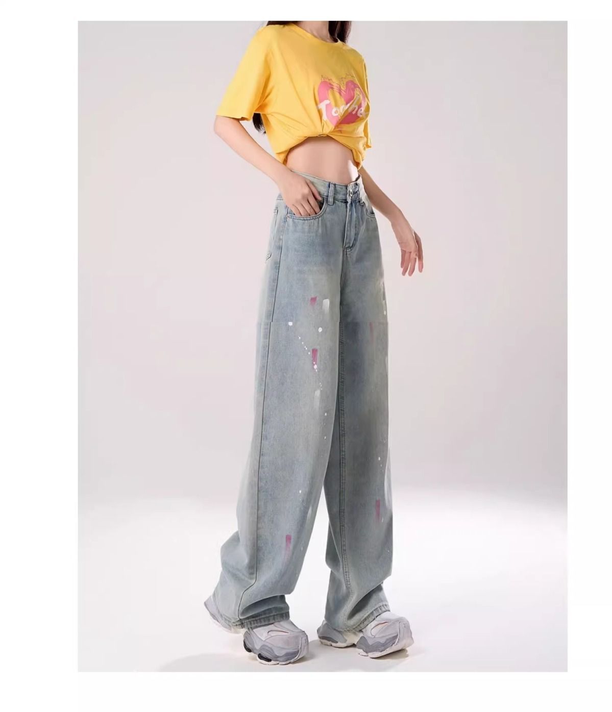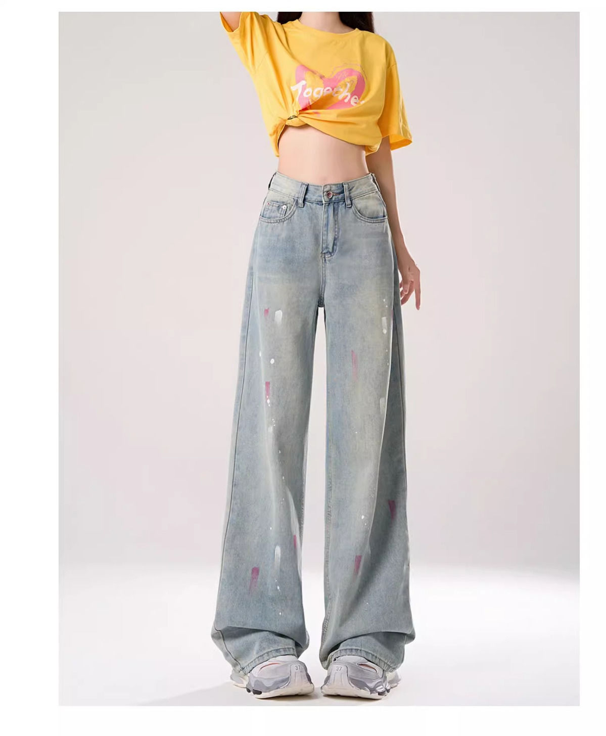 라이트 블루 독특한 직선 다리 넓은 다리 청바지 여성의 봄과 가을 2025 새로운 다목적 높은 허리 좁은 슬림 넓은 다리 바지스토어 가기