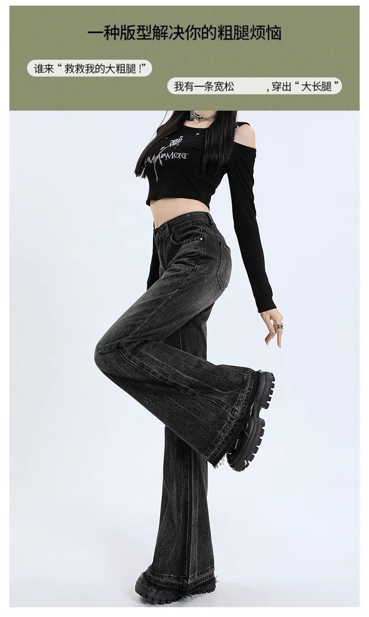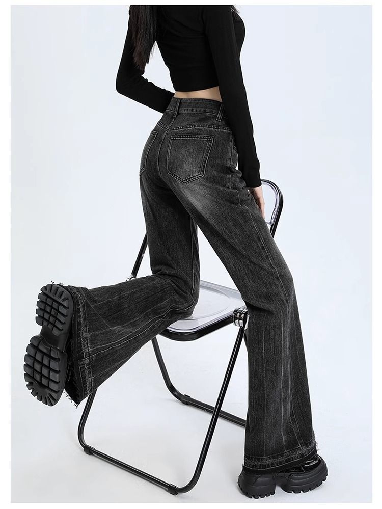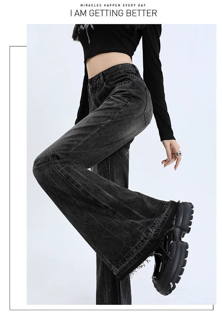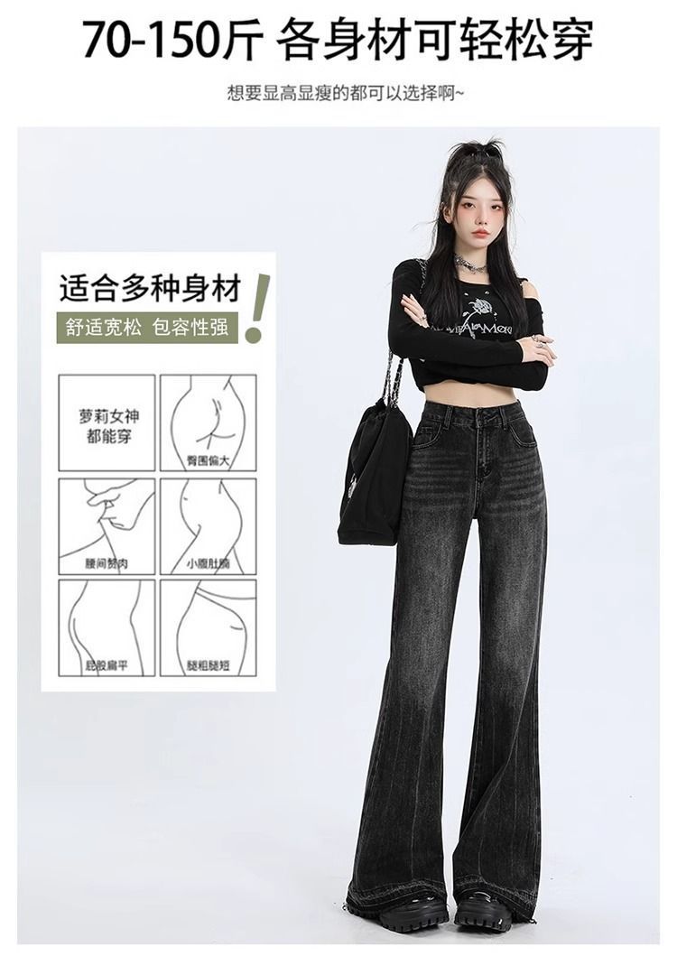 검은 회색 약한 청바지 여성의 봄과 가을 새로운 높은 허리 느슨한 슬리밍 질감 디자인 센스 랩 걸레 바지
