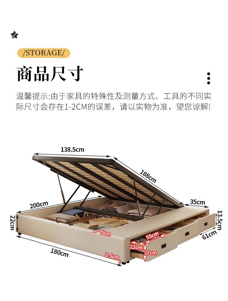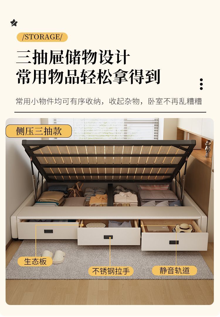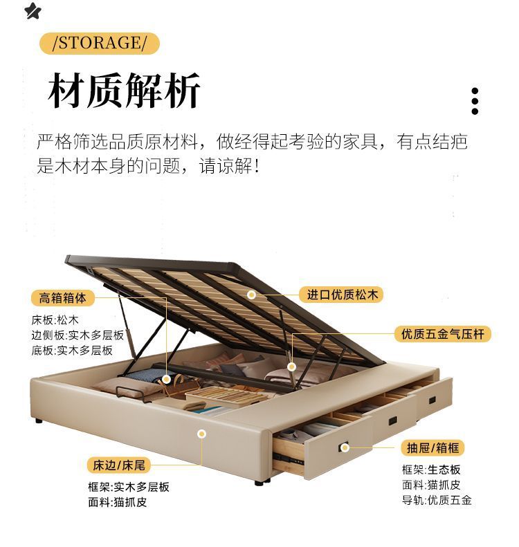 다다미 침대 없음 침대 보관 침대 마스터 침실 없음 등받이 침대 없음 강철 나무 랙 프레임 침대 서랍 높은 상자 공압 침대스토어 가기
