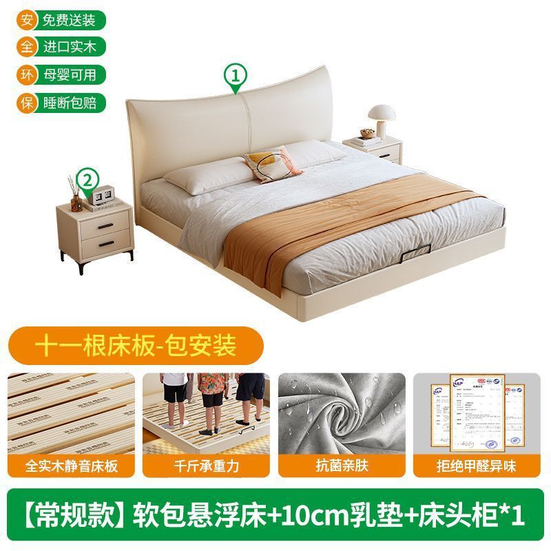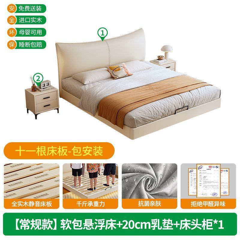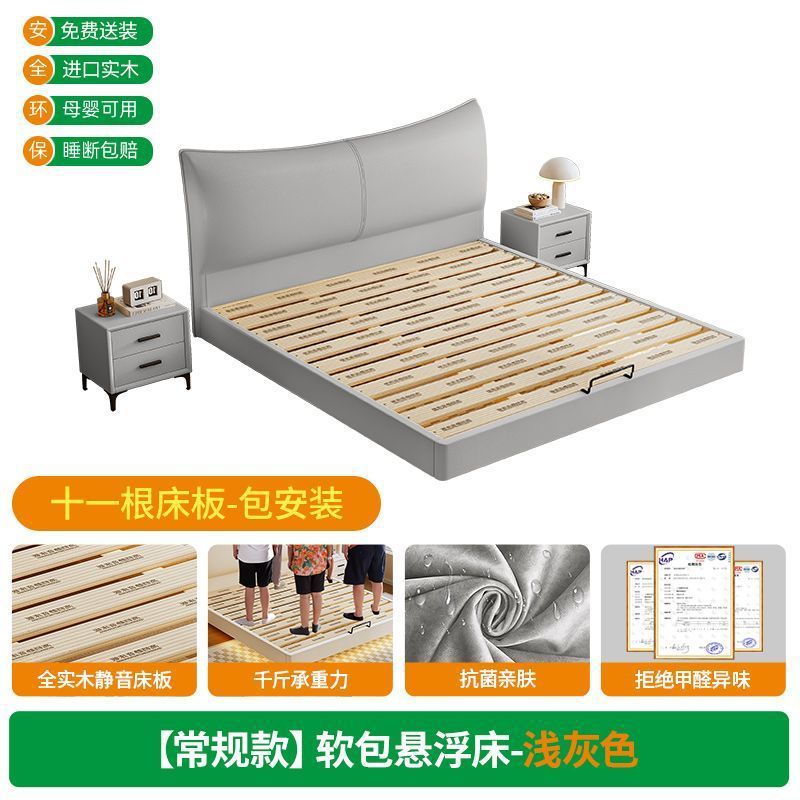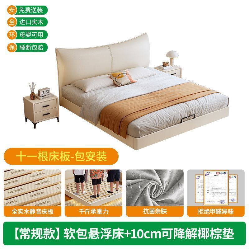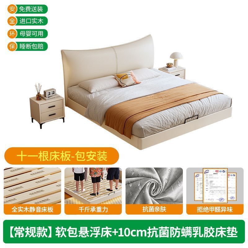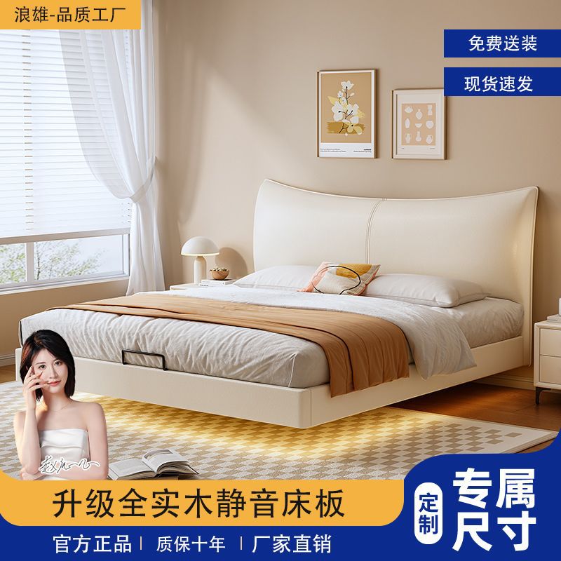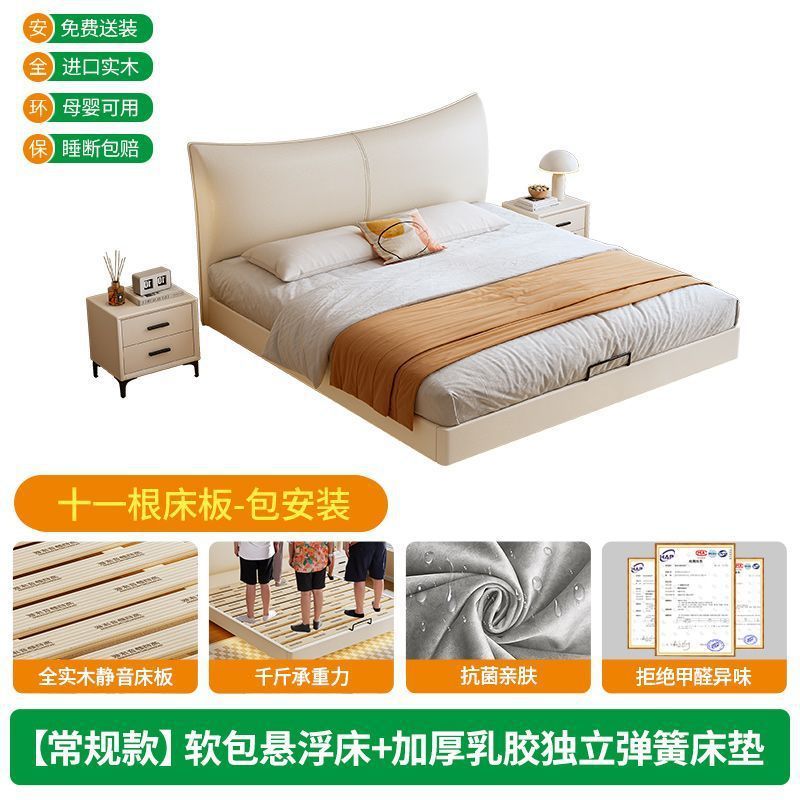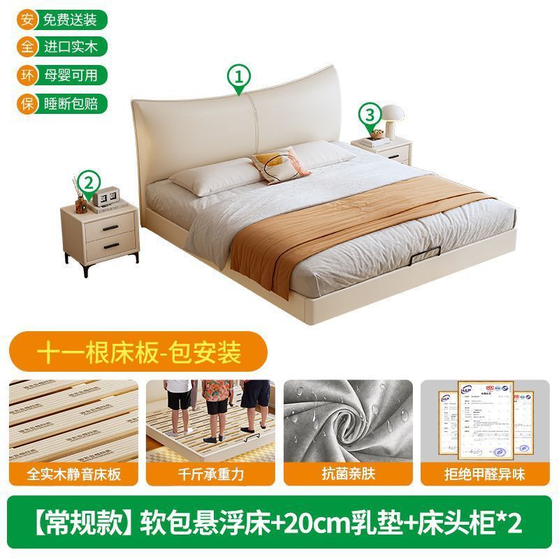 풀 솔리드 우드 서스펜션 침대 현대 간단한 마스터 침실 더블 침대 라이트 럭셔리 소프트 가죽 아트 침대 작은 아파트 가장자리 스마일 침대스토어 가기