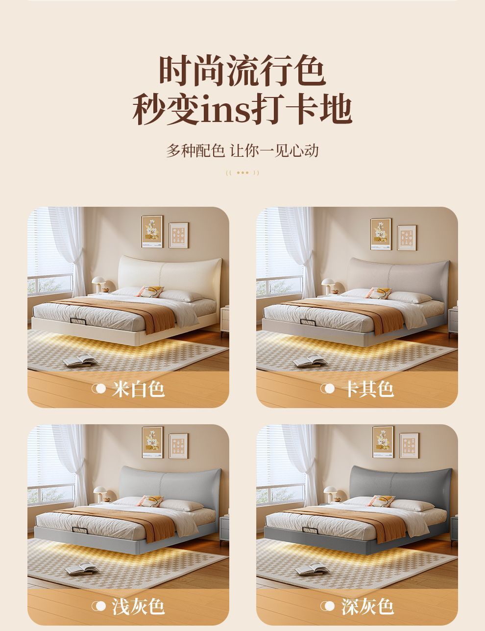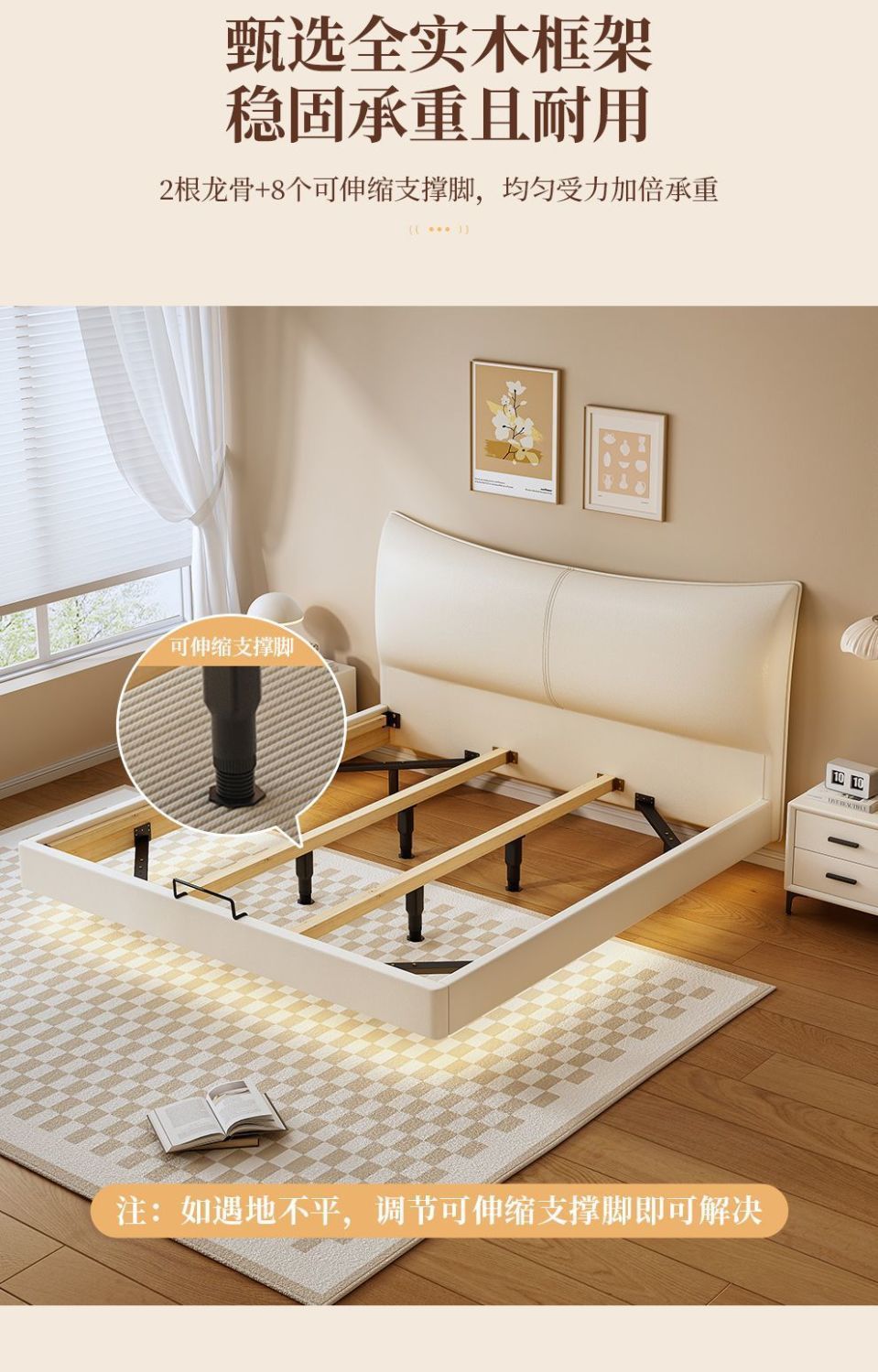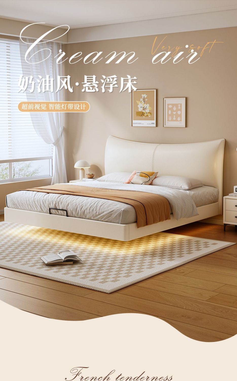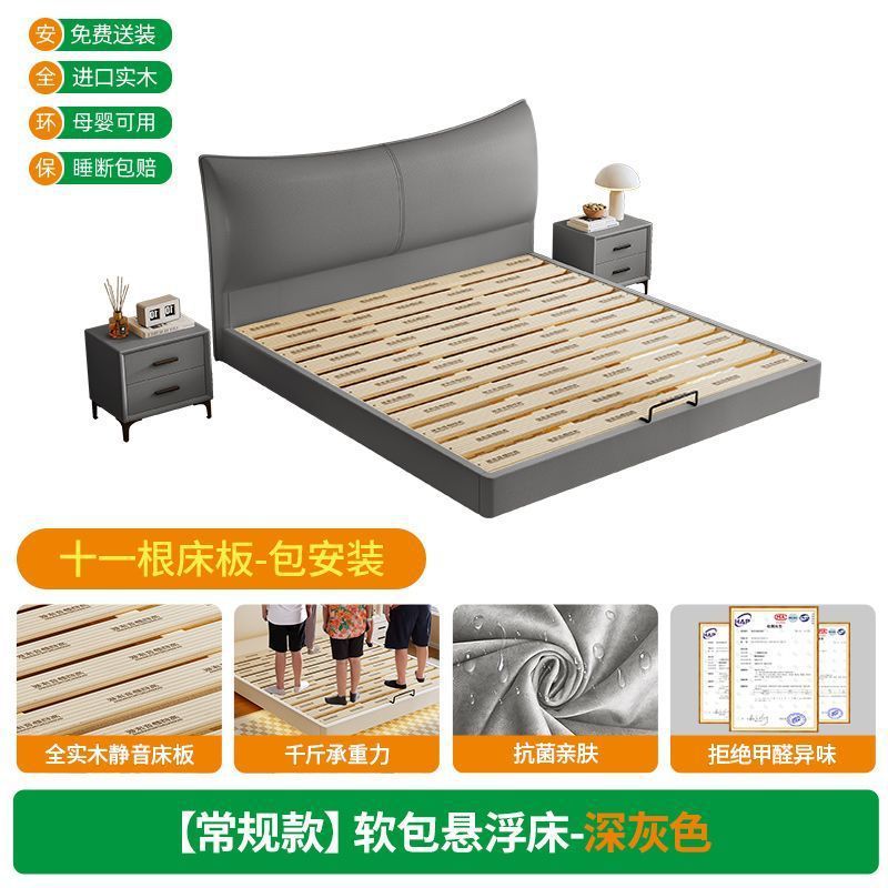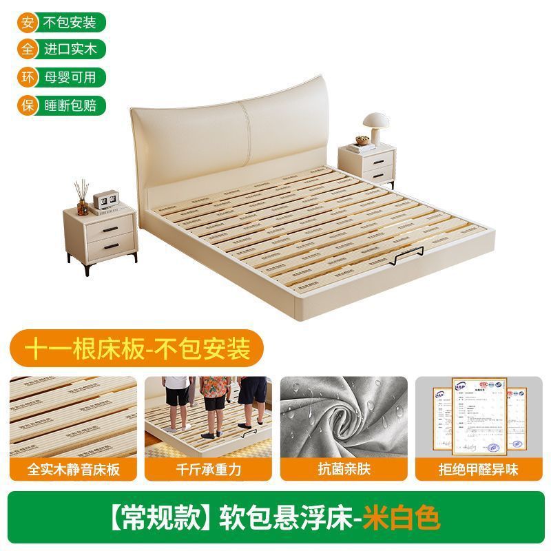 풀 솔리드 우드 서스펜션 침대 현대 간단한 마스터 침실 더블 침대 라이트 럭셔리 소프트 가죽 아트 침대 작은 아파트 가장자리 스마일 침대스토어 가기
