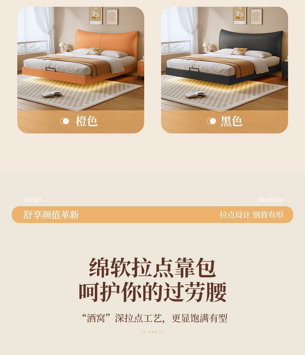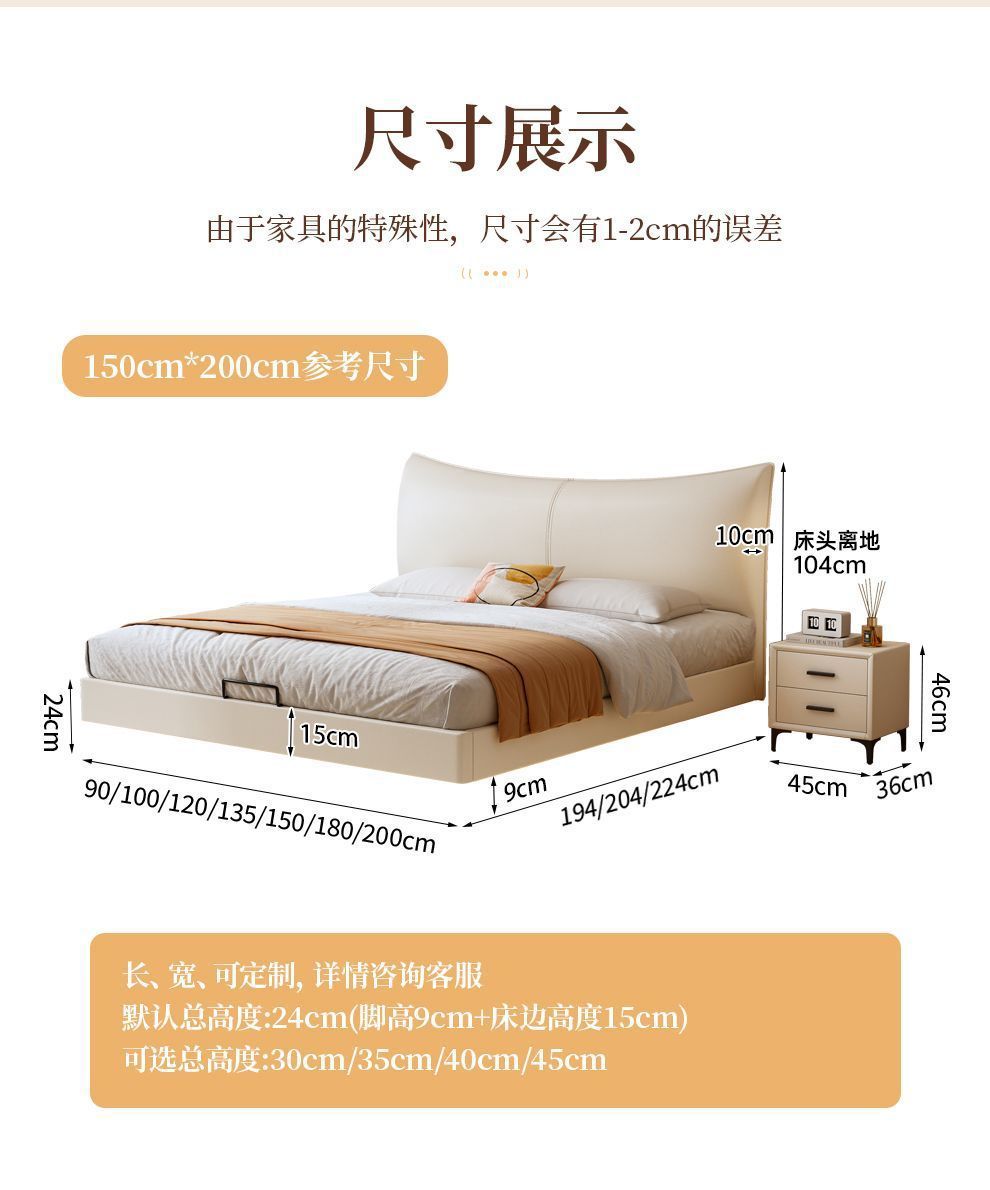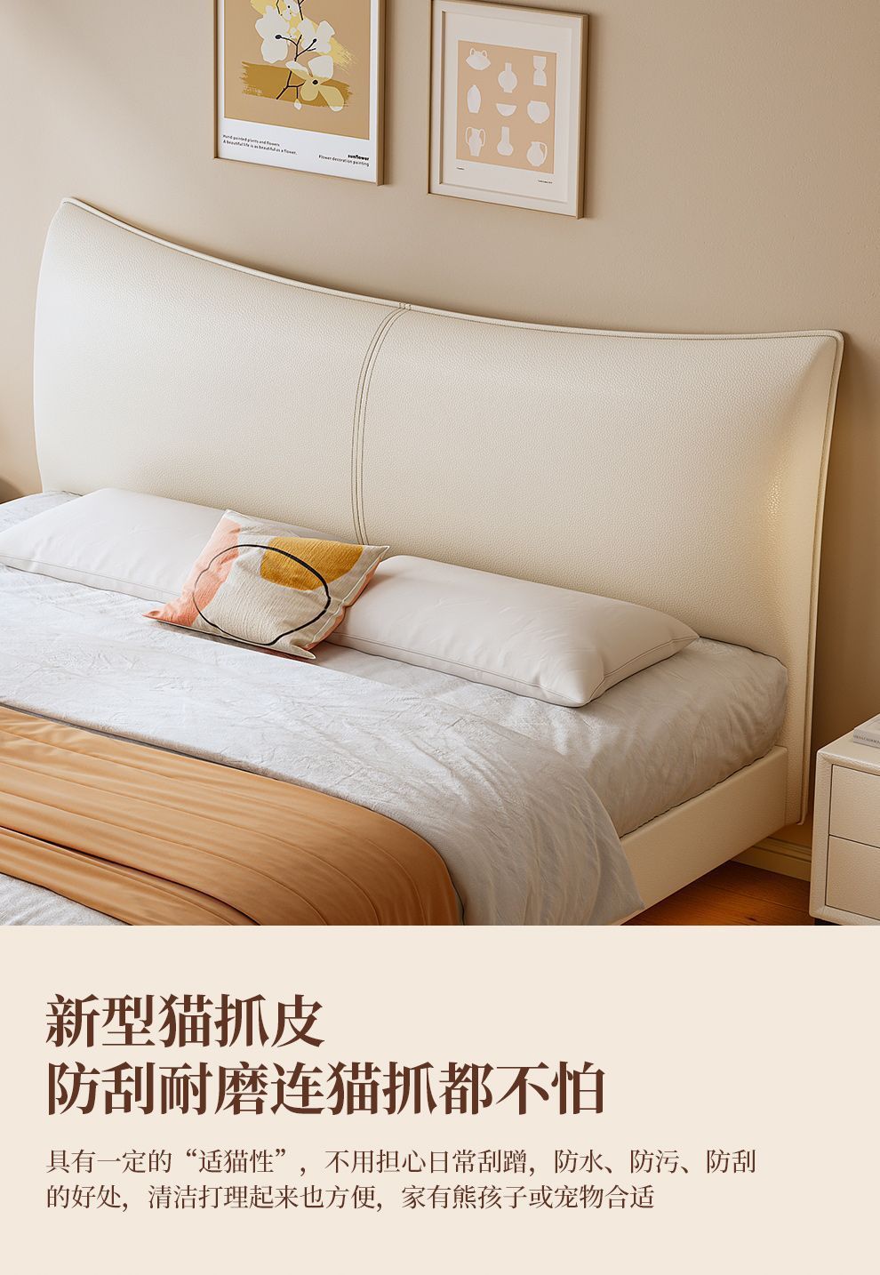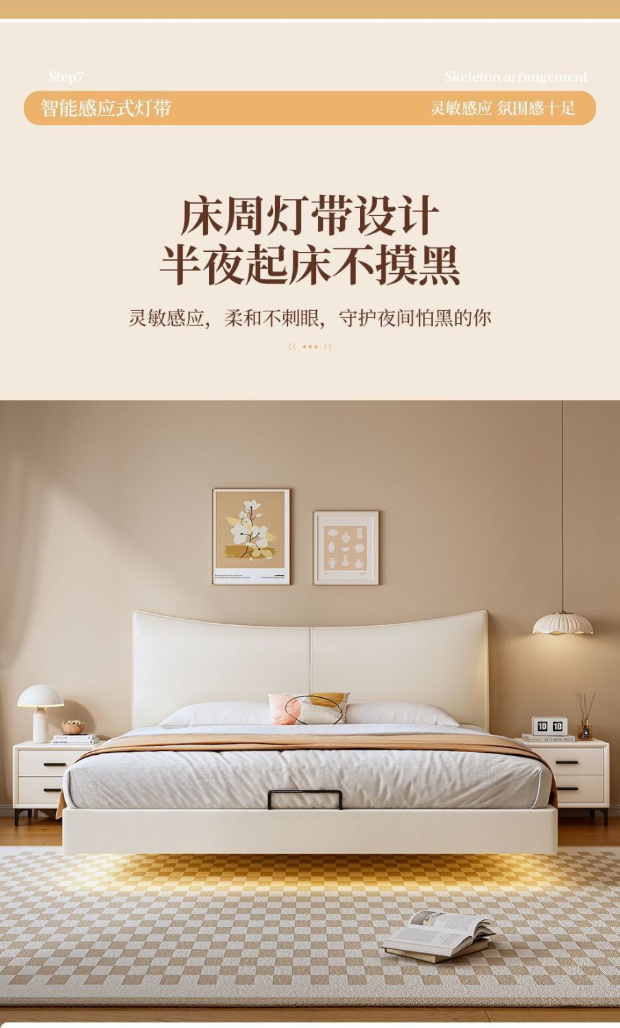 풀 솔리드 우드 서스펜션 침대 현대 간단한 마스터 침실 더블 침대 라이트 럭셔리 소프트 가죽 아트 침대 작은 아파트 가장자리 스마일 침대스토어 가기