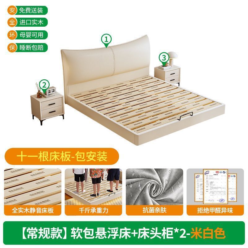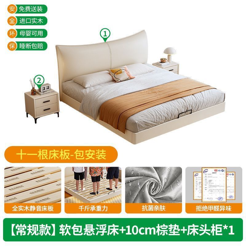 • [일반 스타일] 샤넬 올 원목 소프트 커버 서스펜션 침대 - 설치는 포함되지 않음