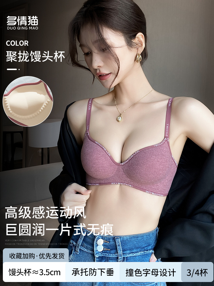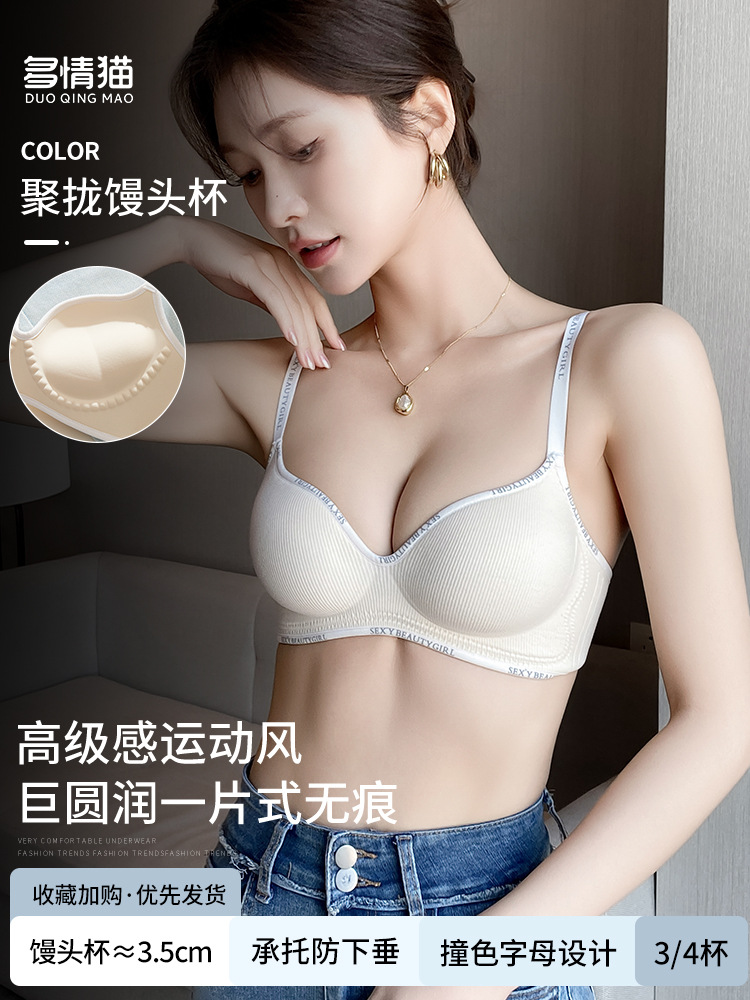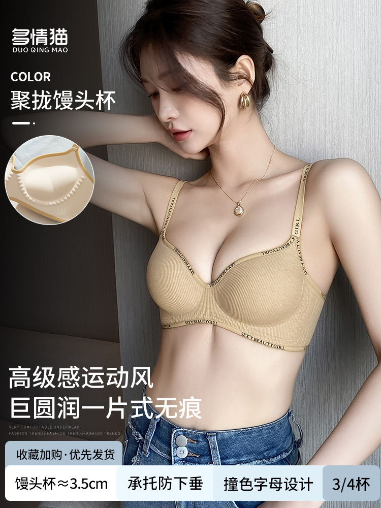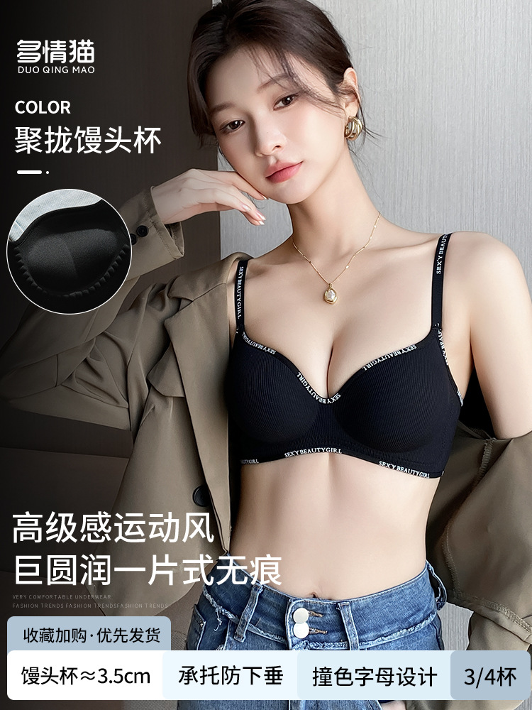 열정적 인 고양이 모임 속옷 여성의 작은 가슴 큰 두꺼운 찐 빵 컵 처짐 방지 마크 편지 어깨 브래지어 겨울스토어 가기