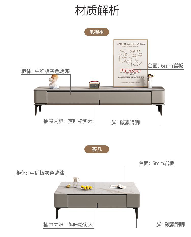 • 슬레이트 TV 캐비닛 + 슬레이트 커피 테이블 + 슬레이트 서랍장