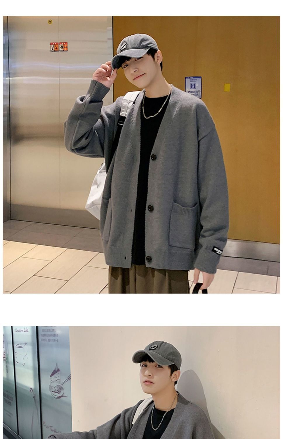 스웨터 남자의 봄과 가을 유행 브랜드 느슨한 카디건 재킷 새로운 2025 새로운 솔리드 컬러 칼라 니트 스웨터스토어 가기