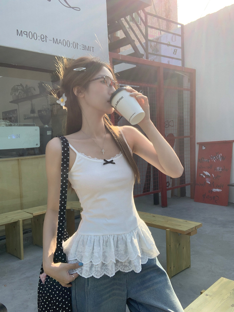 달콤한 활 화이트 카미 솔 여성의 봄 내부 슬림 슬림 레이스 머리 아름다운 뒷면스토어 가기