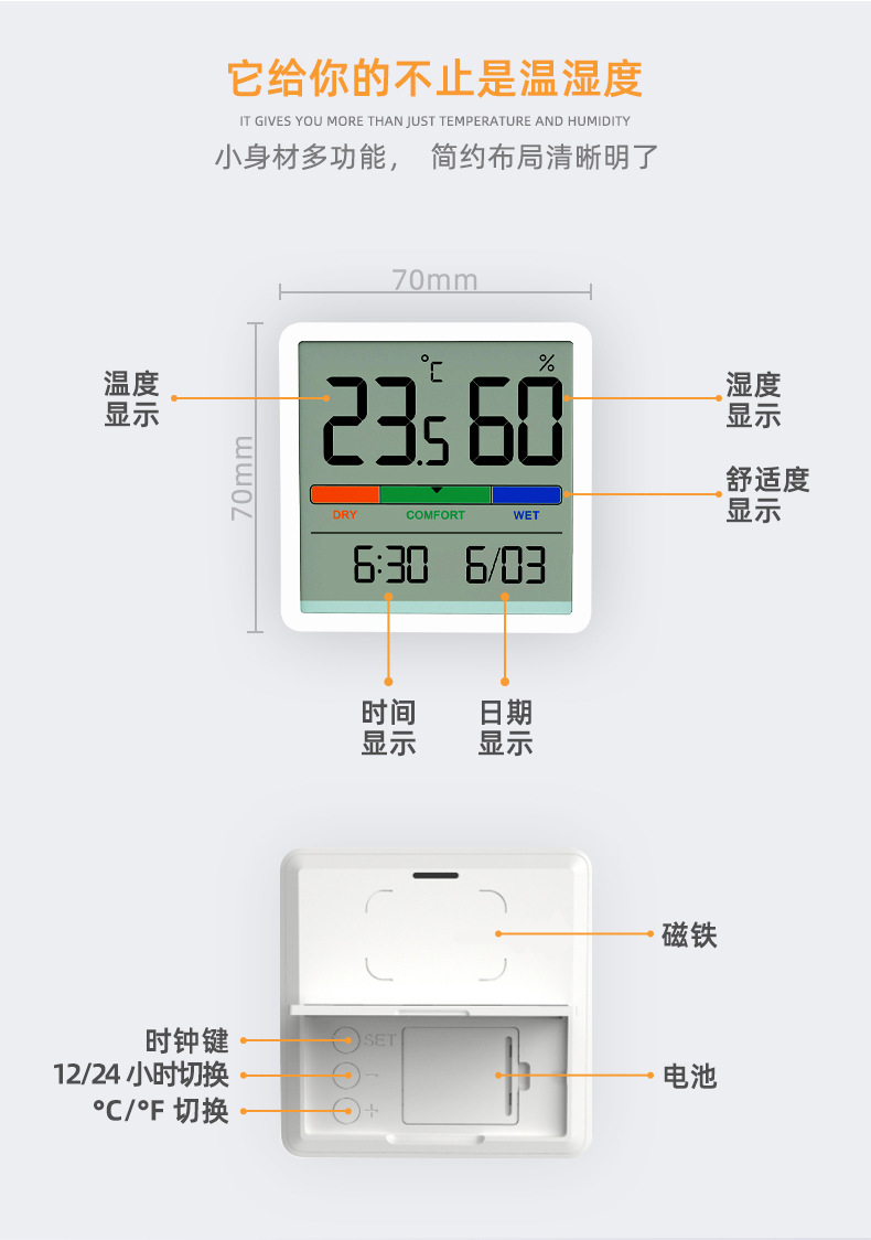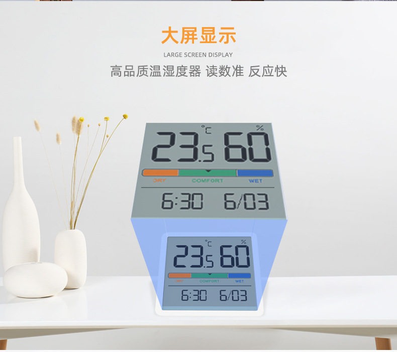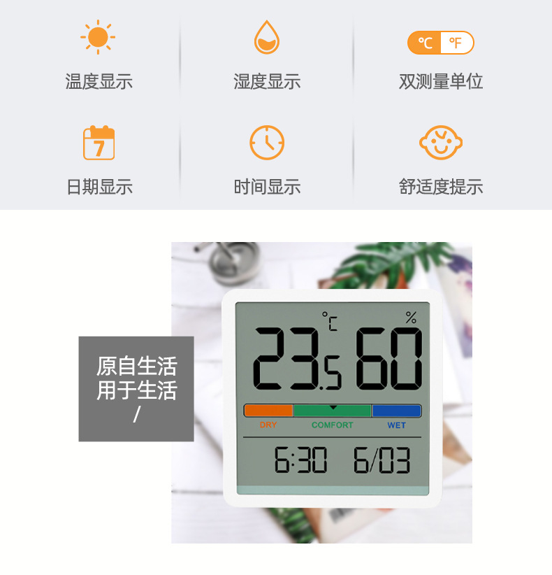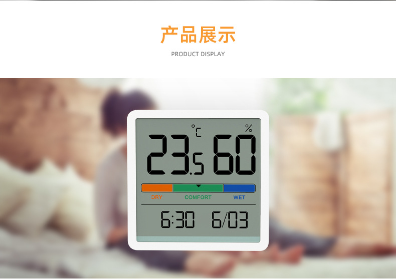 국경 간 신제품 영구 달력 온도 및 습도 측정기 시계 홈 실내 베이비 룸 전자 벽걸이 형 온도 및 습도 측정기스토어 가기