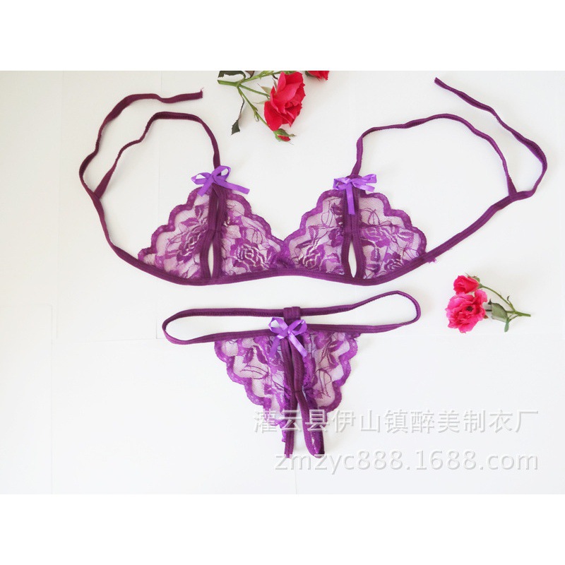 섹시한 속옷 3 점 오픈 엔드 비키니 레이스 파자마 세트 끈 투피스 세트 선물스토어 가기