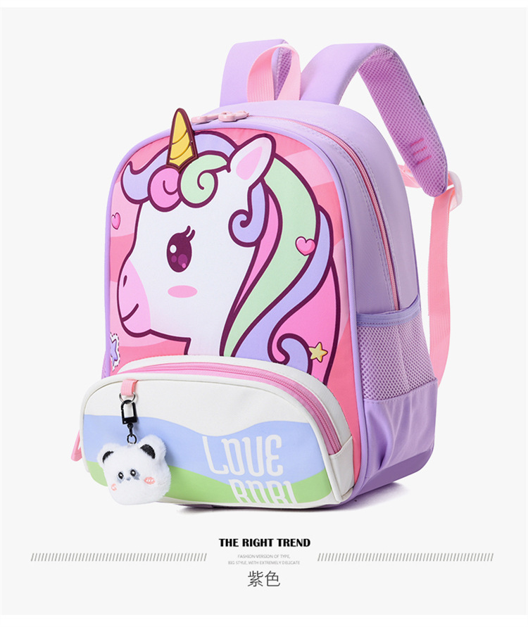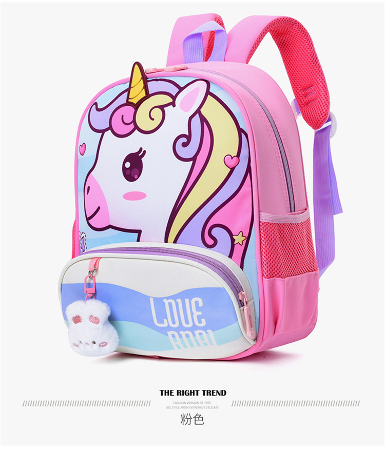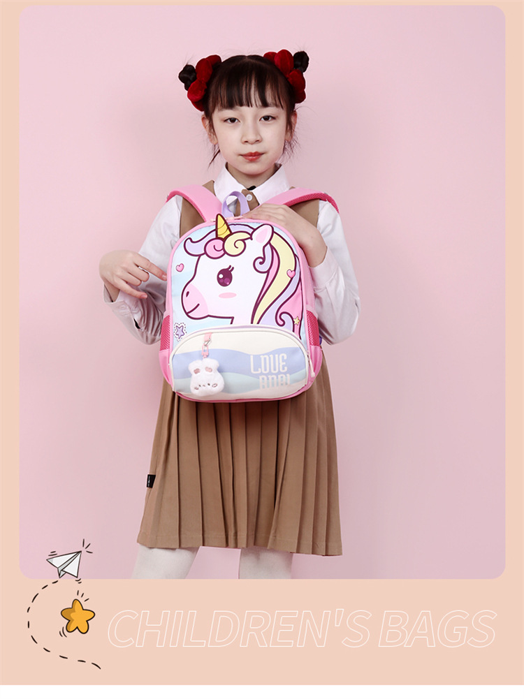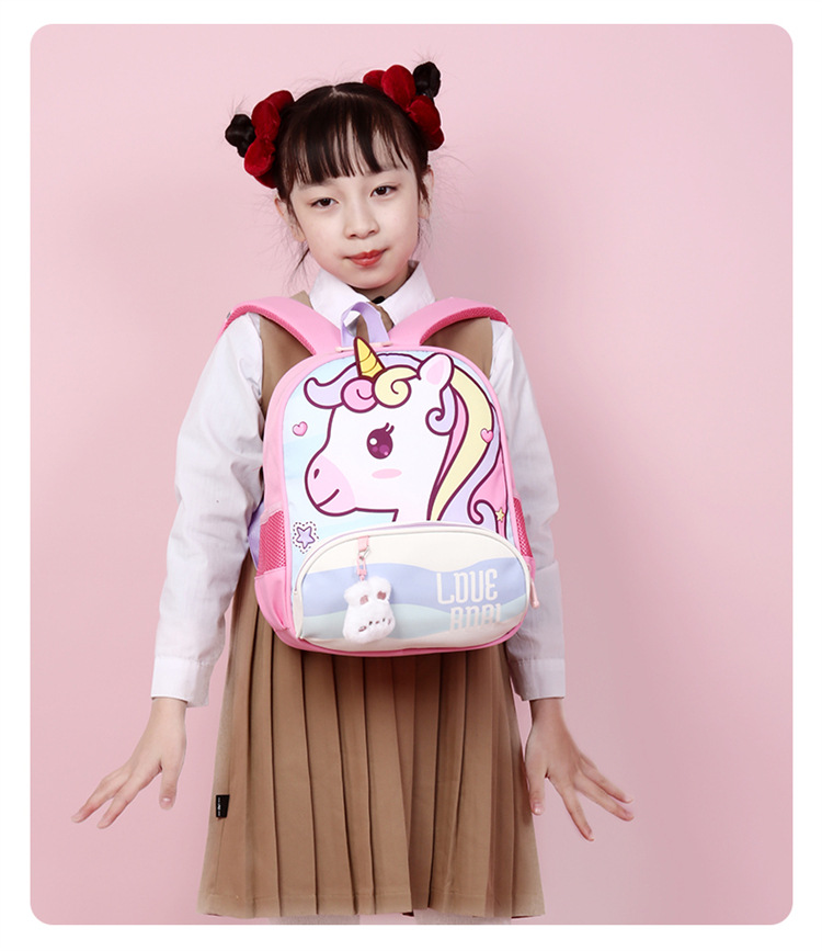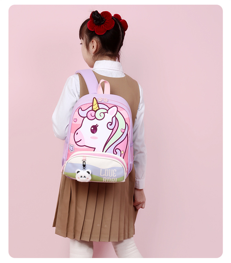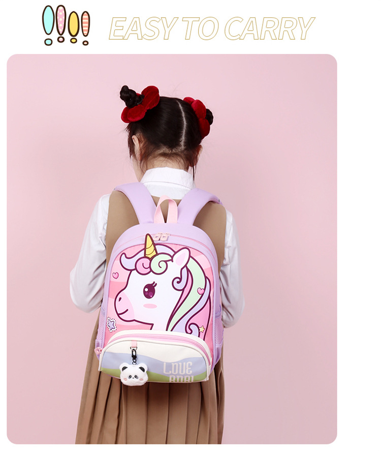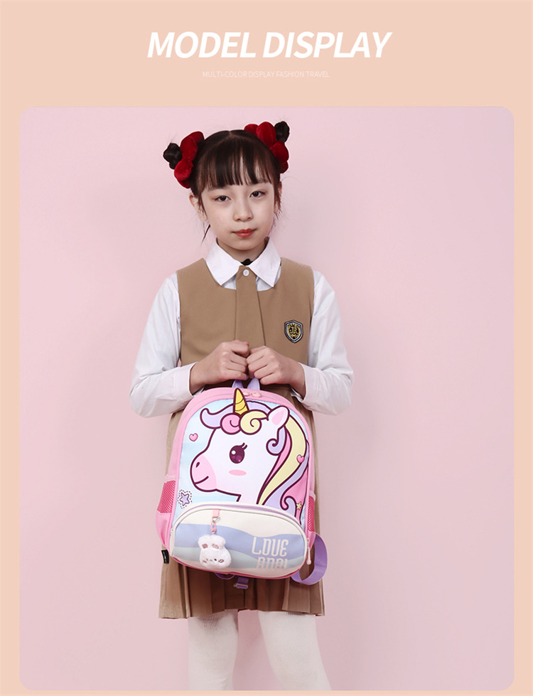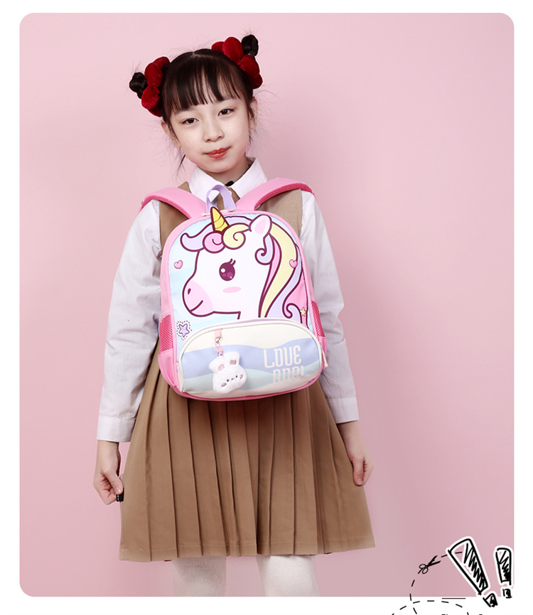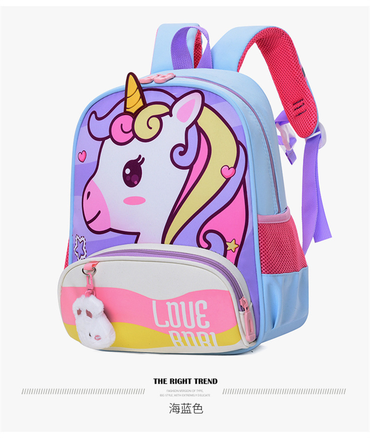 새로운 어린이 스쿨백 만화 귀여운 유니콘 소년과 소녀 배낭 유행 경량 부하 감소 유치원 스쿨 백