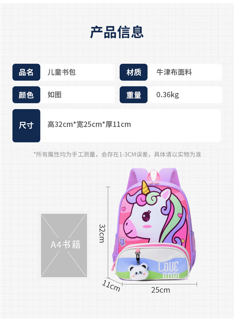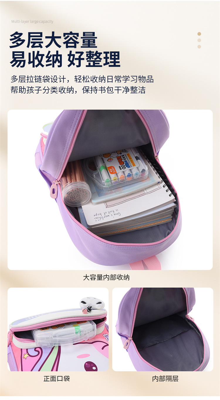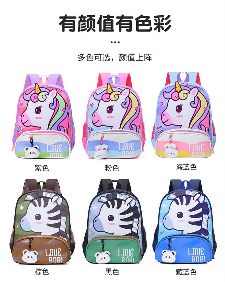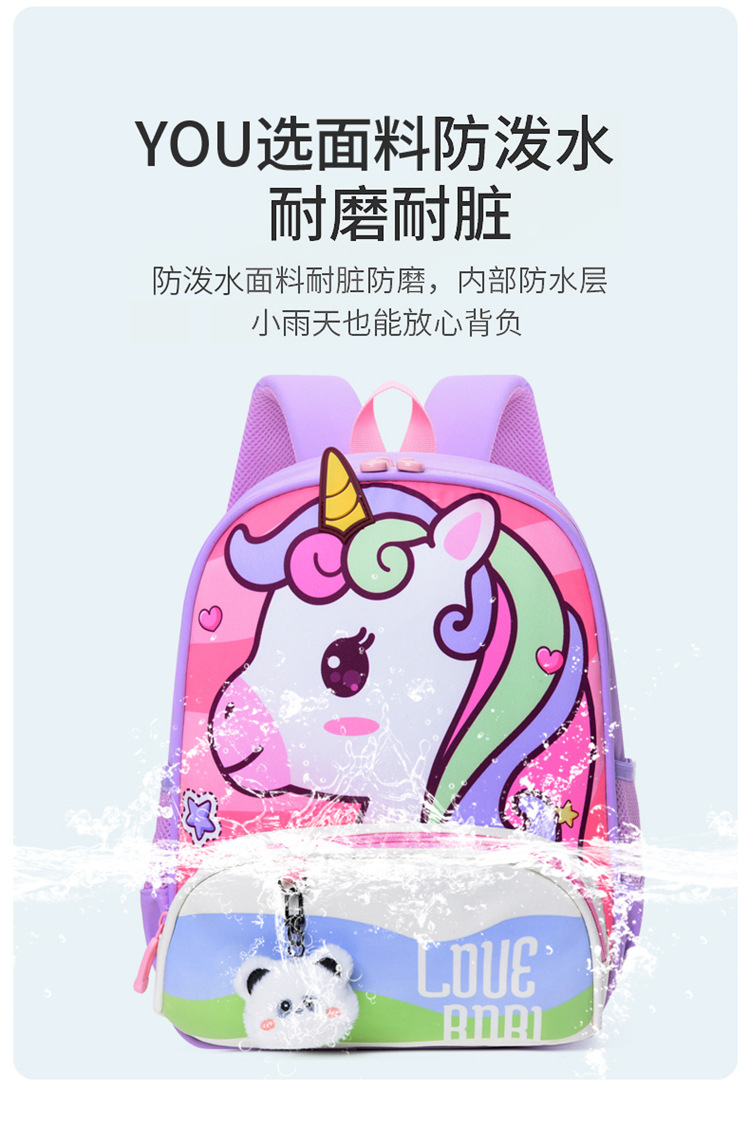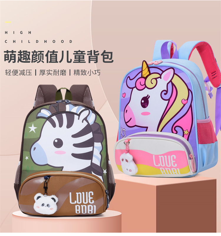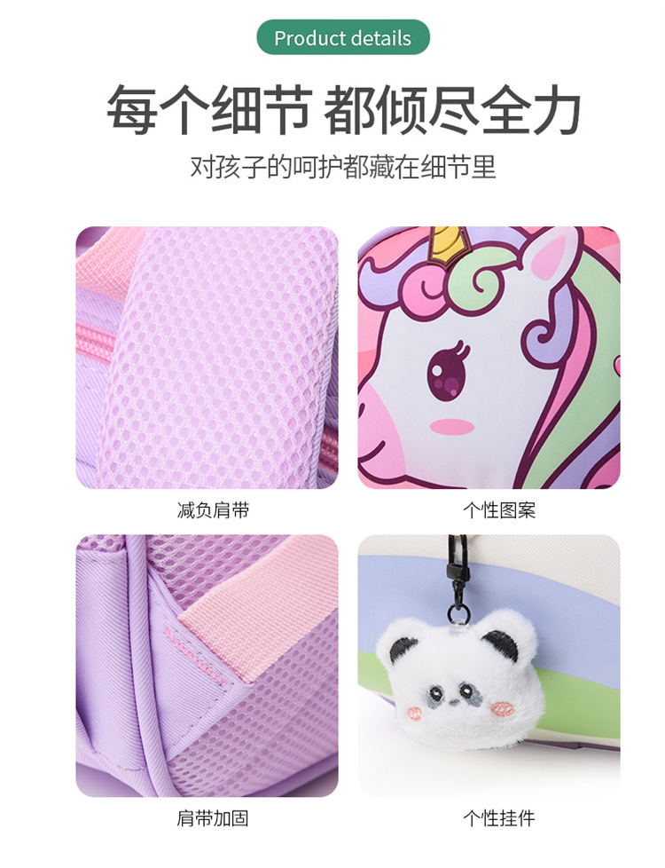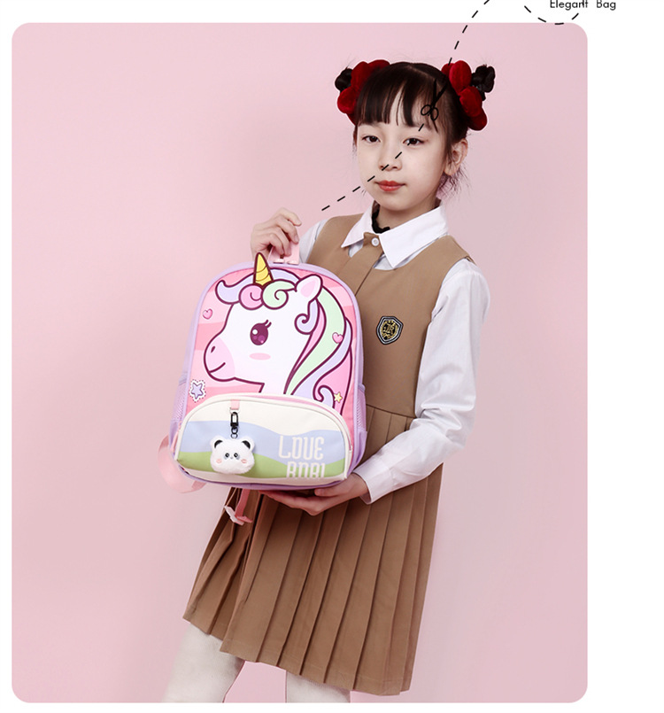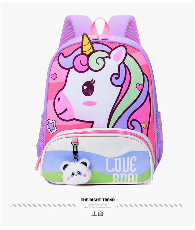 새로운 어린이 스쿨백 만화 귀여운 유니콘 소년과 소녀 배낭 유행 경량 부하 감소 유치원 스쿨 백