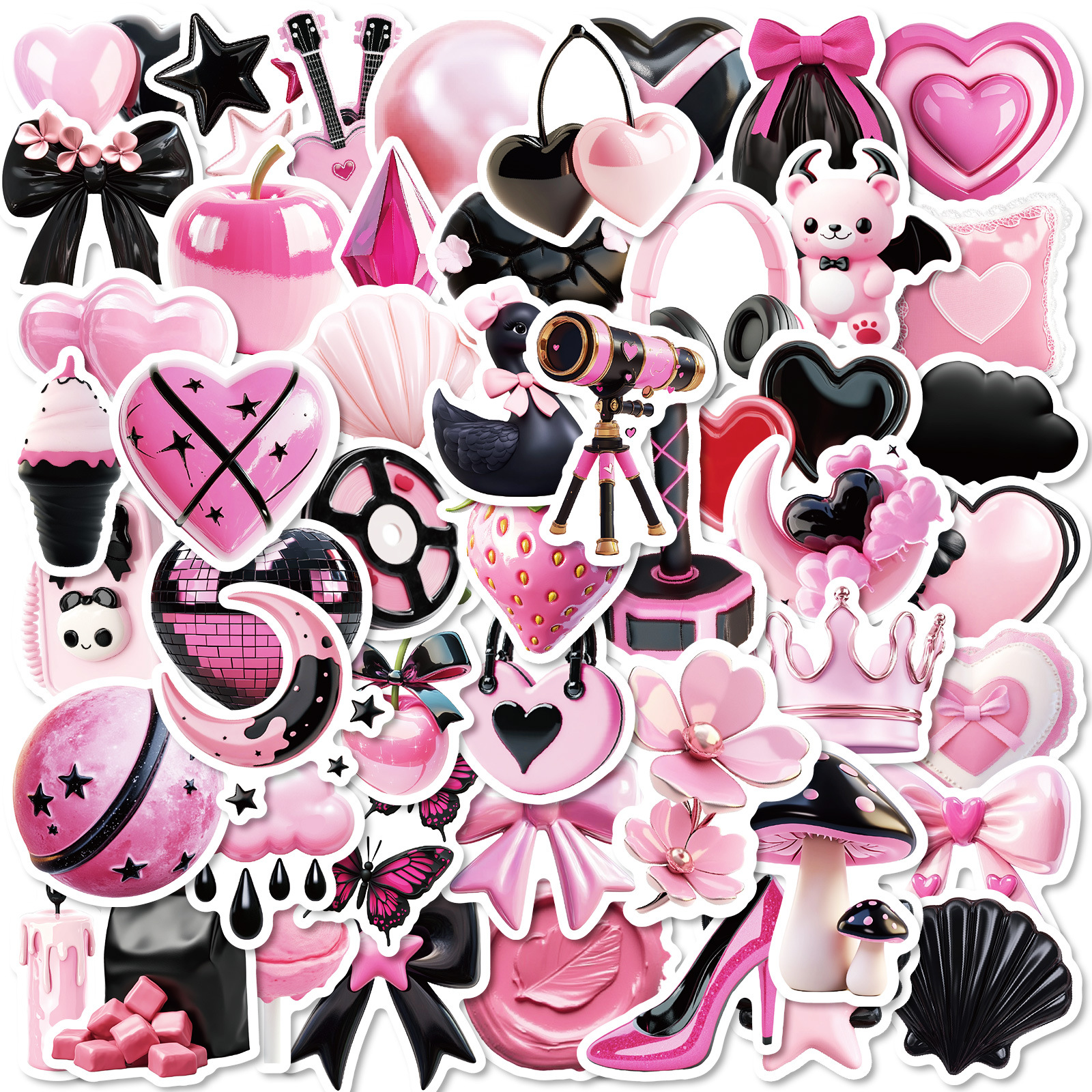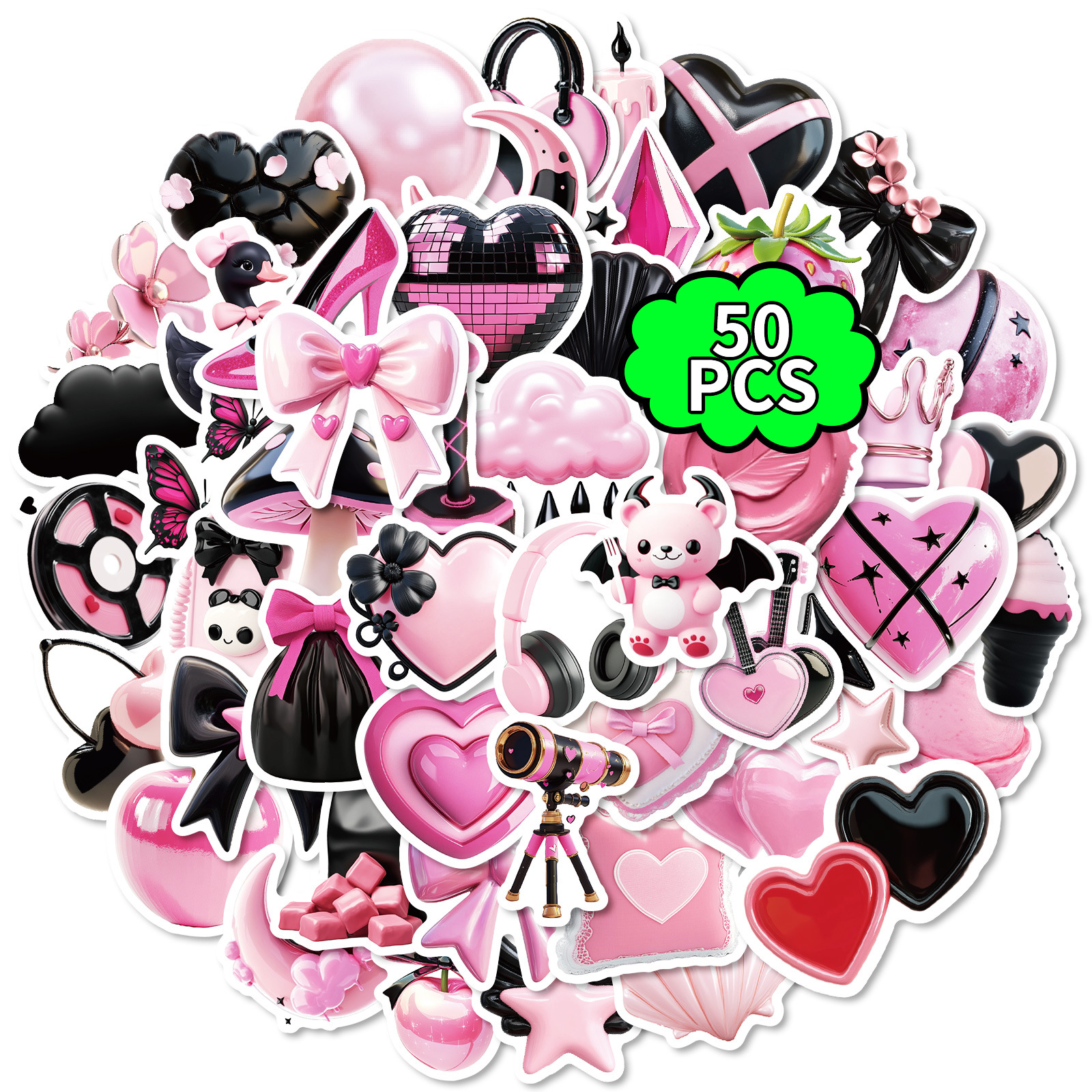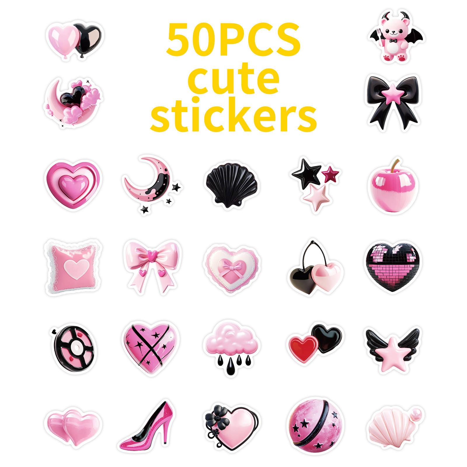 새로운 50 귀여운 블랙 파우더 낙서 장식 방수 스티커 모든 종류의 활 사랑 동물은 스티커를 반복하지 않습니다스토어 가기