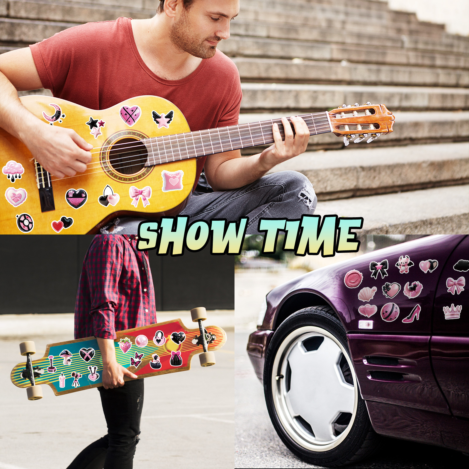 새로운 50 귀여운 블랙 파우더 낙서 장식 방수 스티커 모든 종류의 활 사랑 동물은 스티커를 반복하지 않습니다