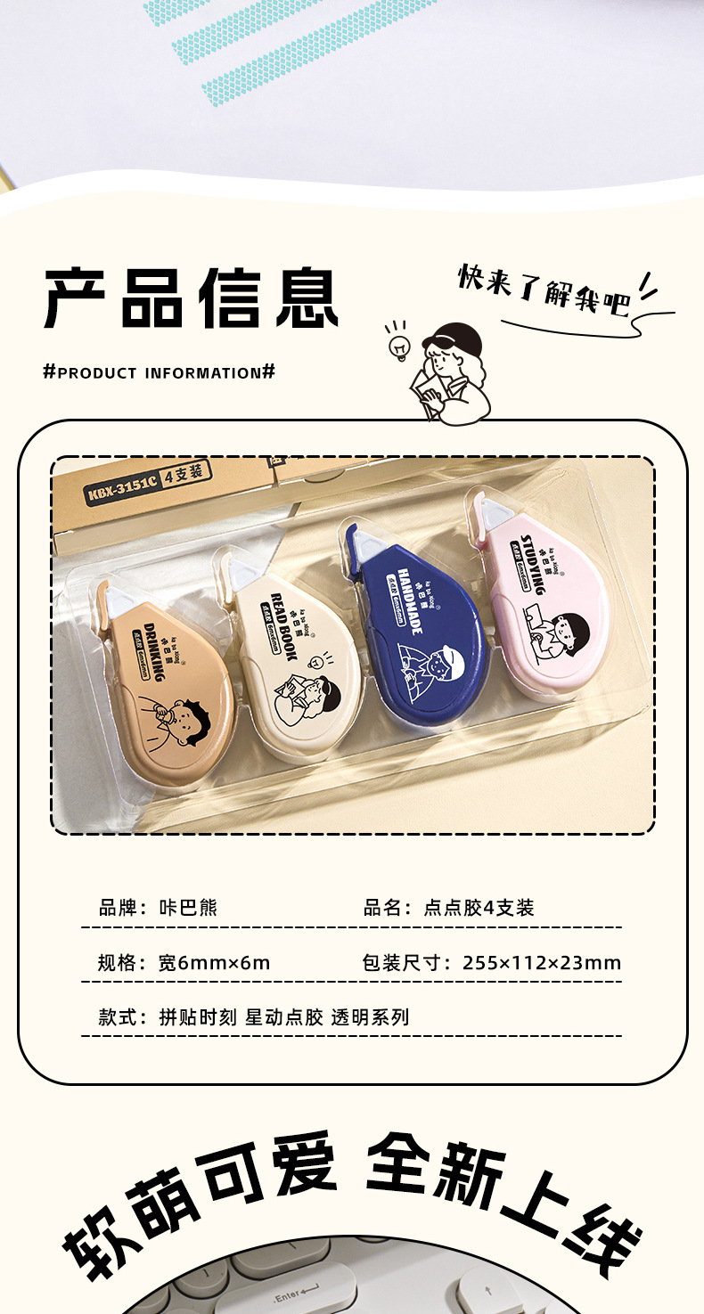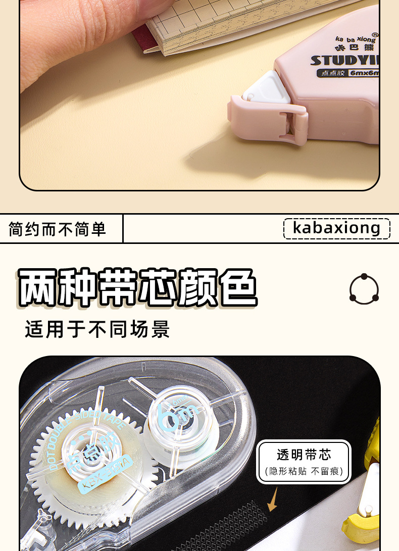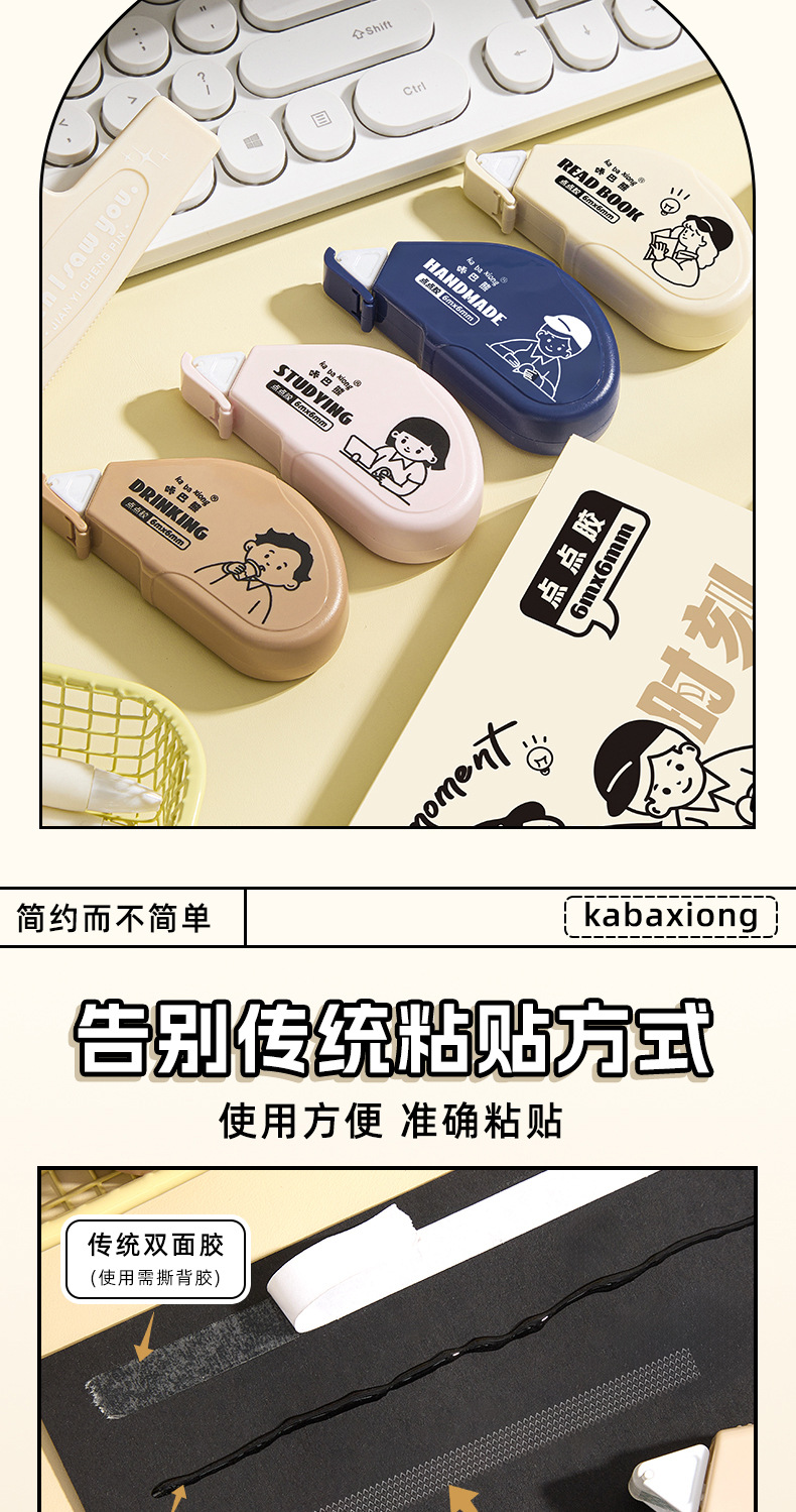 수정 테이프 유형 대용량 양면 접착 수동 테이프가있는 학생을위한 손 계정 분배 펜 투명 도트 접착제 양면 접착제