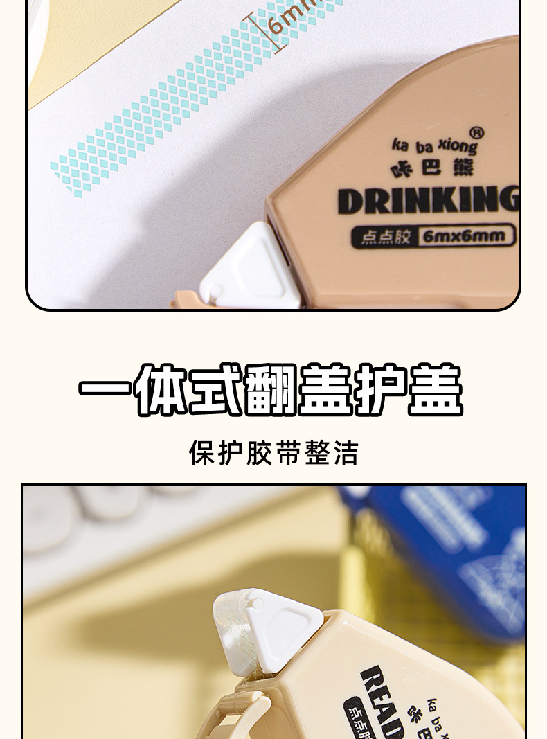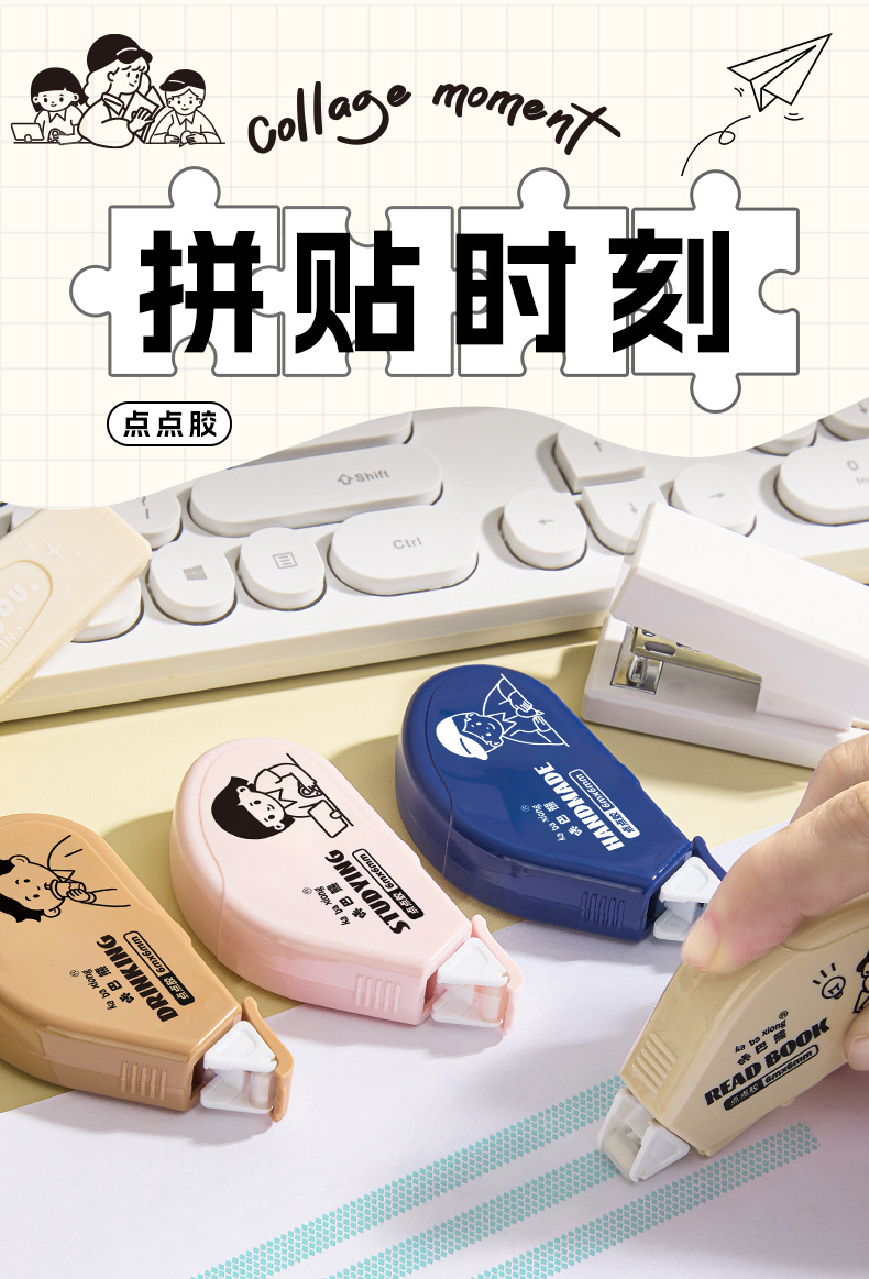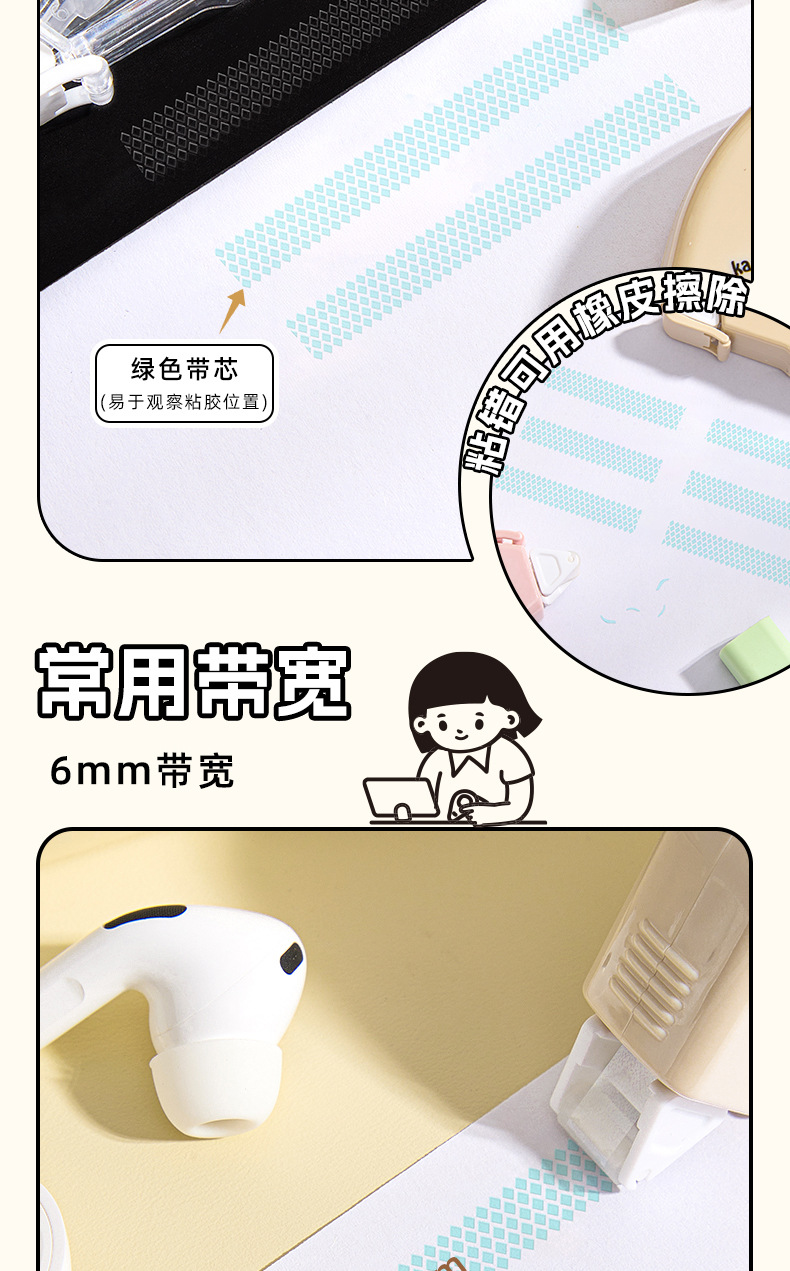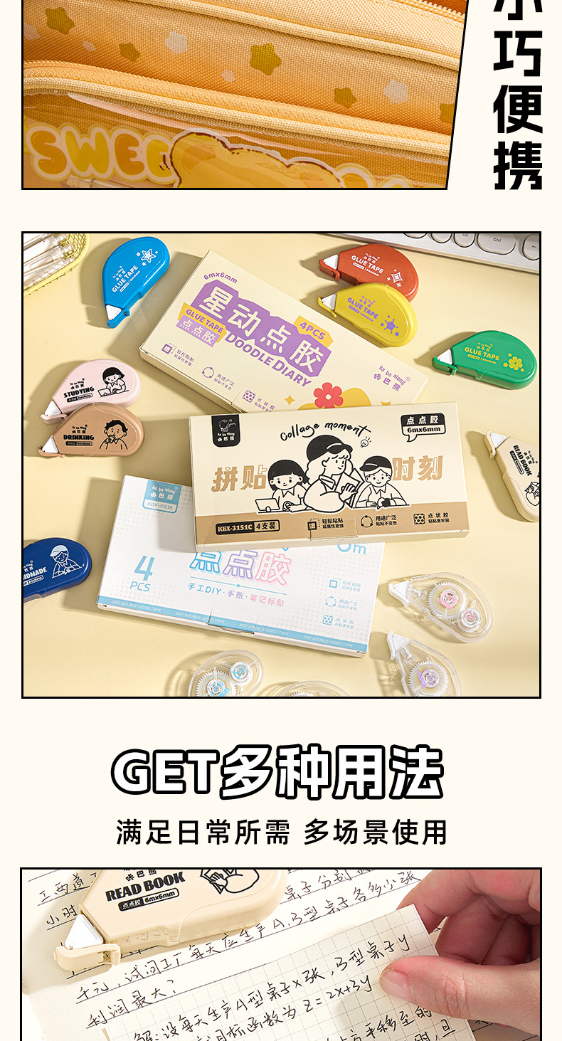 수정 테이프 유형 대용량 양면 접착 수동 테이프가있는 학생을위한 손 계정 분배 펜 투명 도트 접착제 양면 접착제