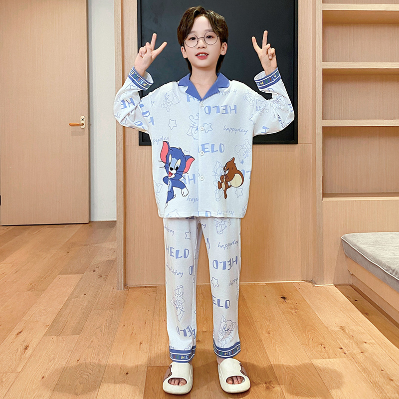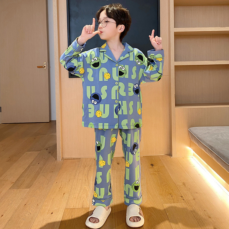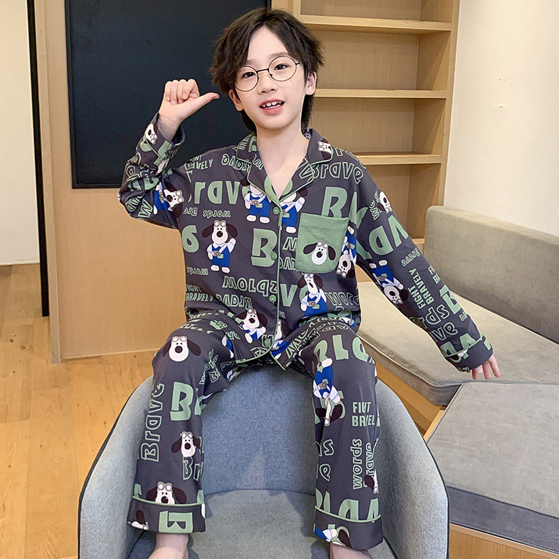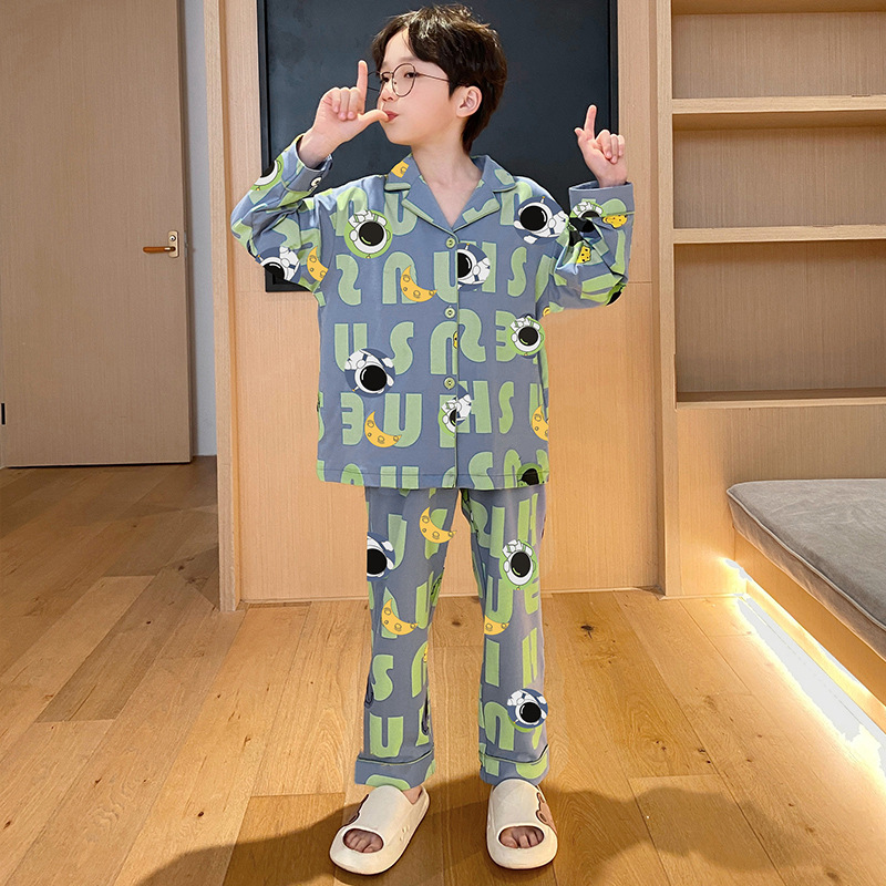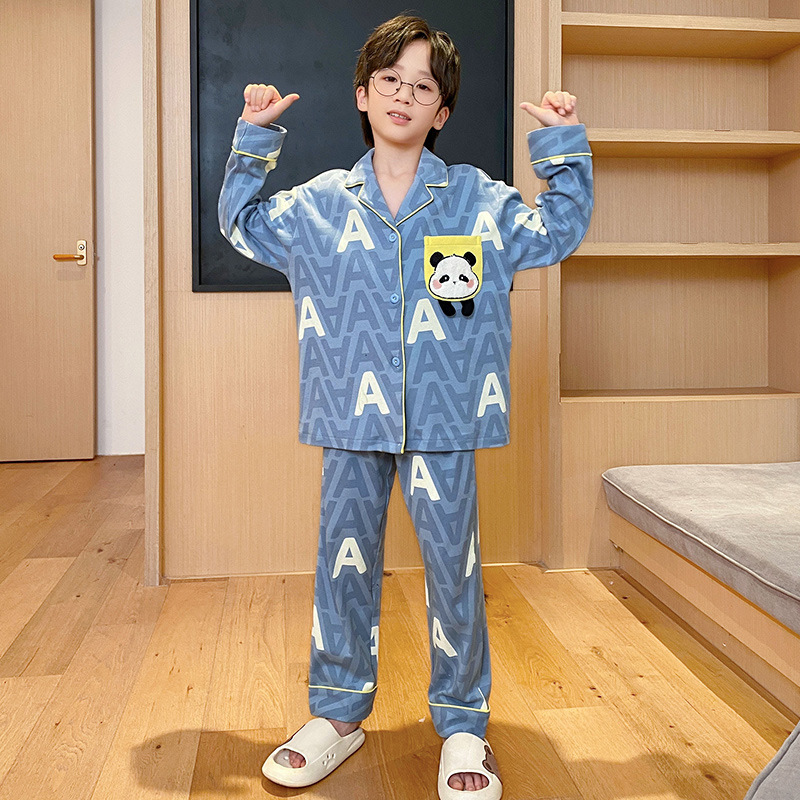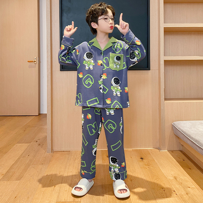 2025 봄 새로운 국경 폭발 어린이 집 옷 가을 카디건 긴 소매 바지 세트 소년 파자마