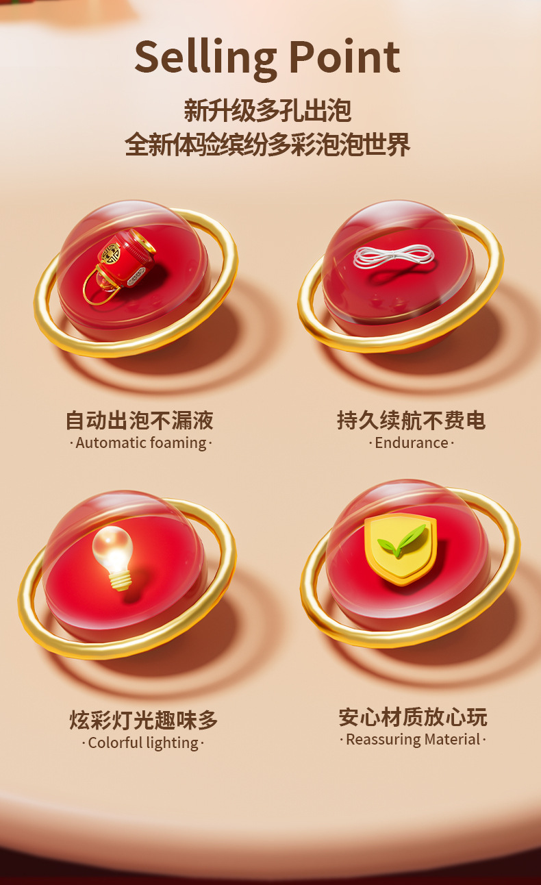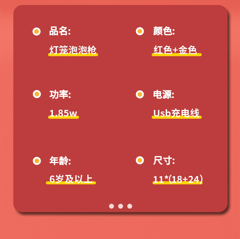 配件:灯笼主体*1,泡泡液50ml一罐,浓缩泡泡液*2包,usb线*1