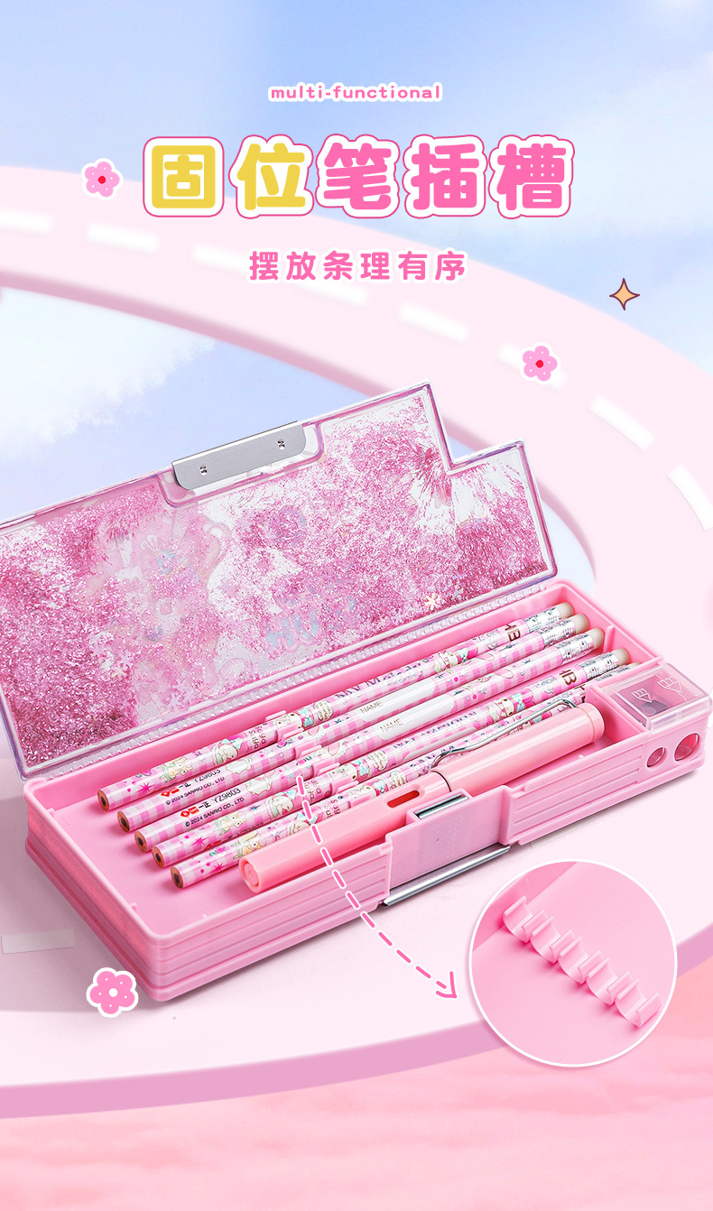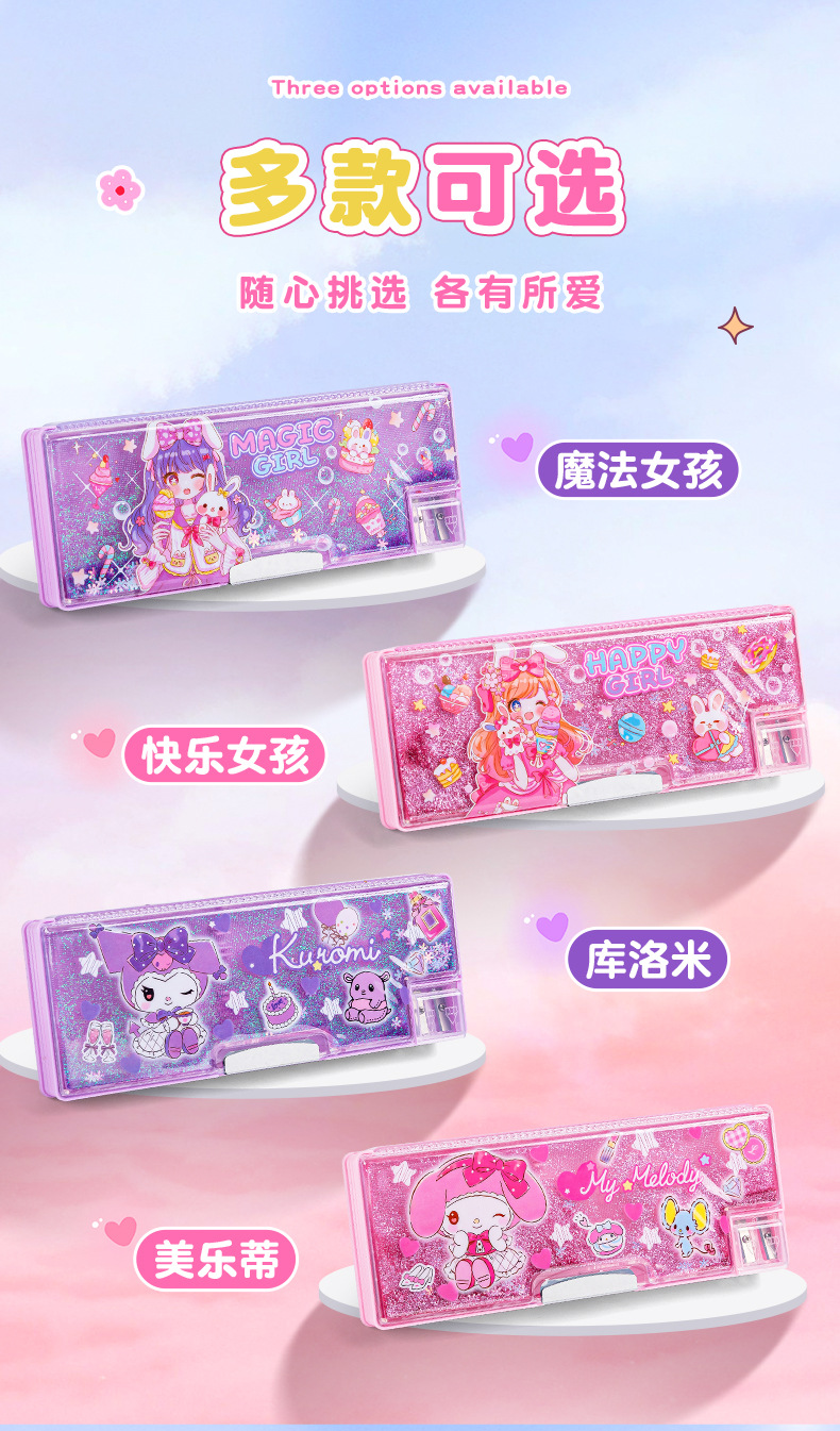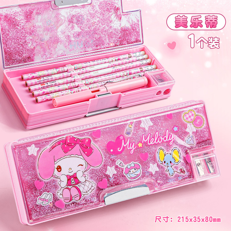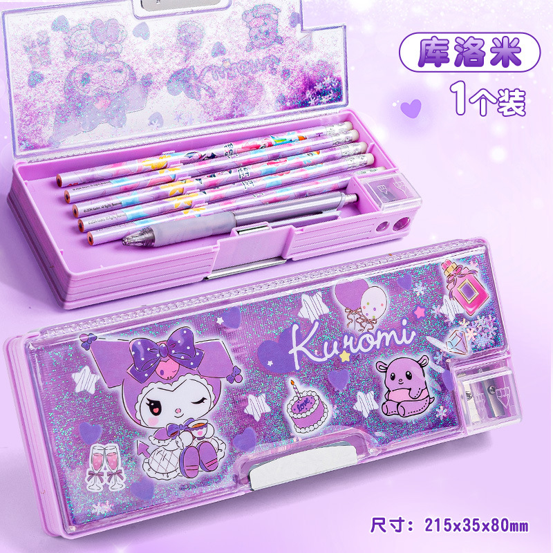 산리오 쿨로 미 퀵 샌드 문구 케이스 소녀 만화 다기능 어린이 연필 케이스 초등학생을위한 대용량