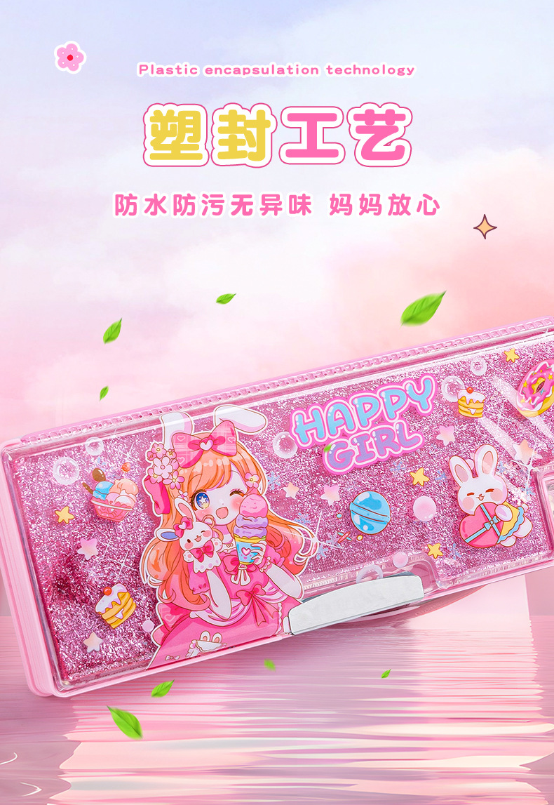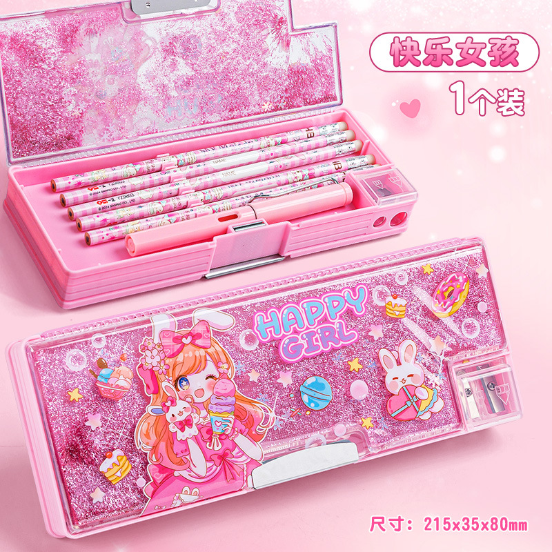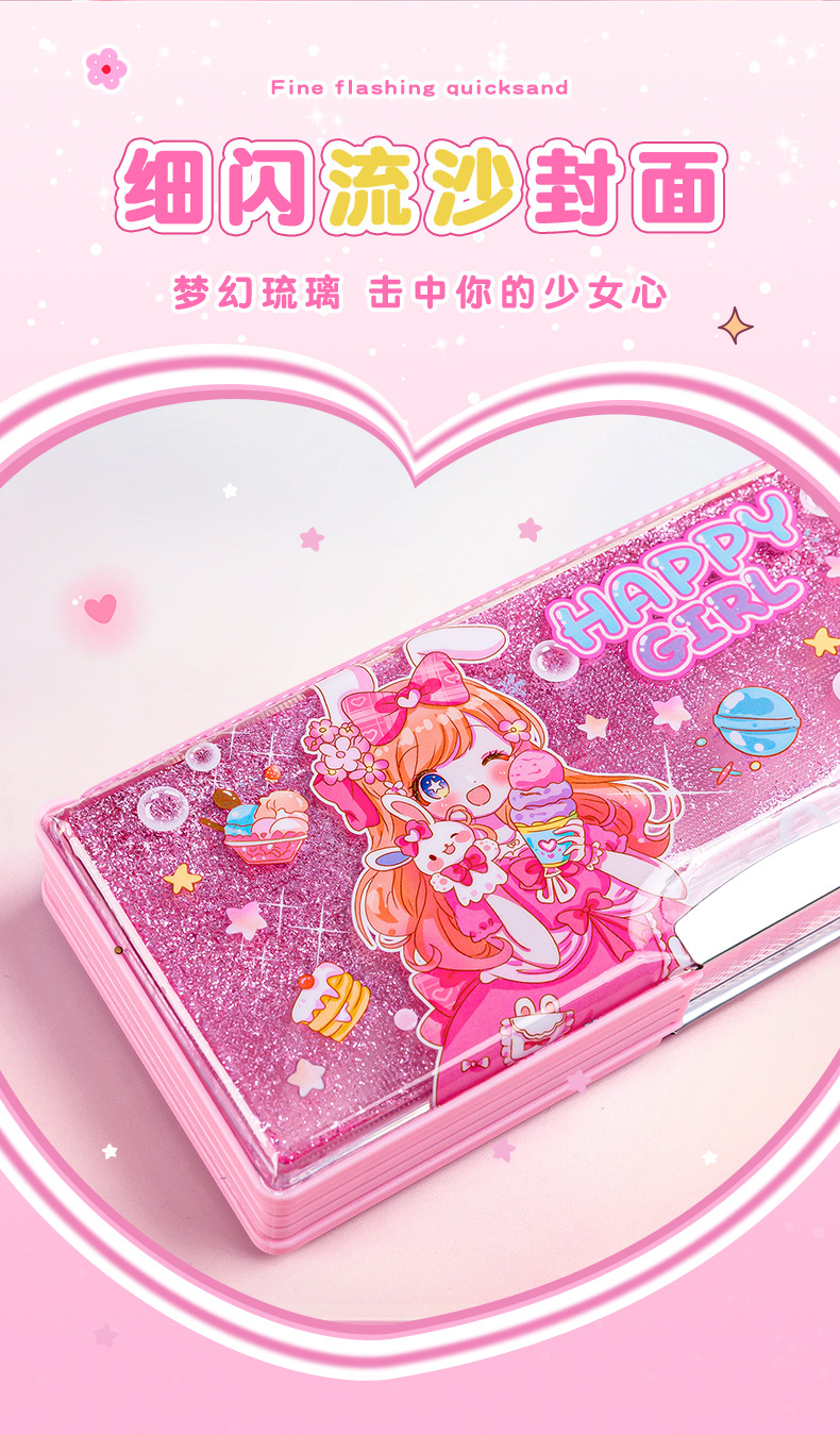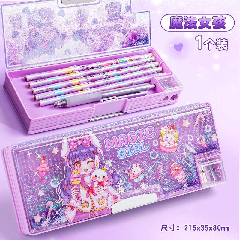 산리오 쿨로 미 퀵 샌드 문구 케이스 소녀 만화 다기능 어린이 연필 케이스 초등학생을위한 대용량
