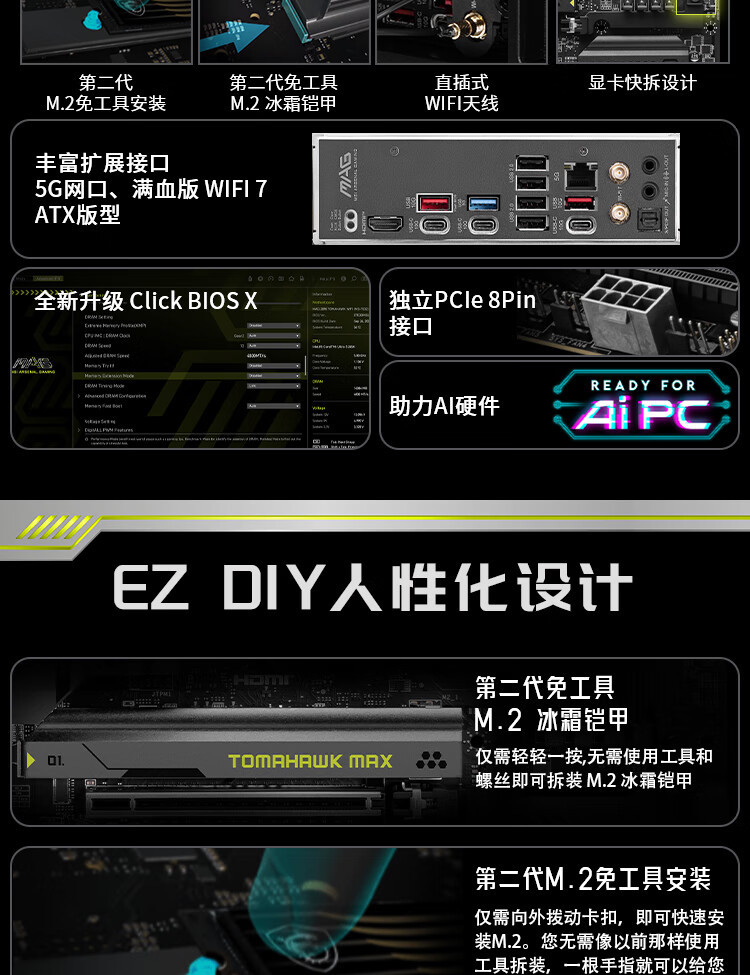 MAG B850 TOMAHAWK MAX WIFI Tomahawk 미사일 마더 보드 지원 CPU A스토어 가기