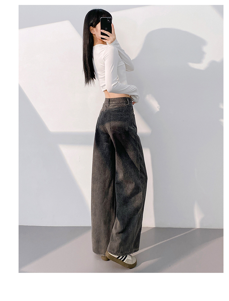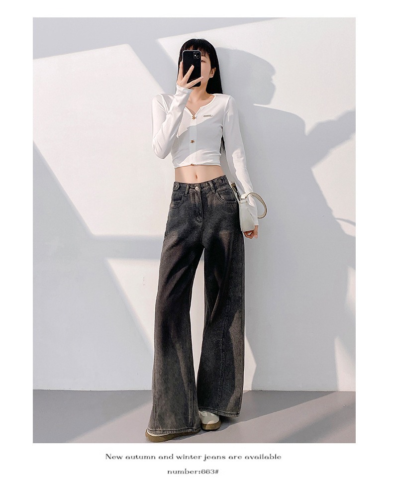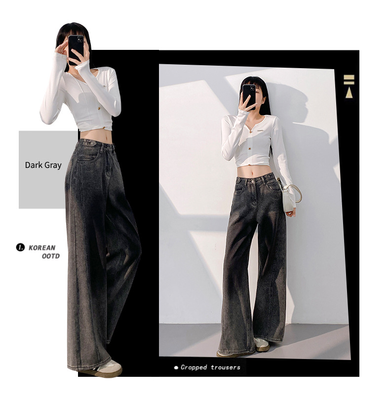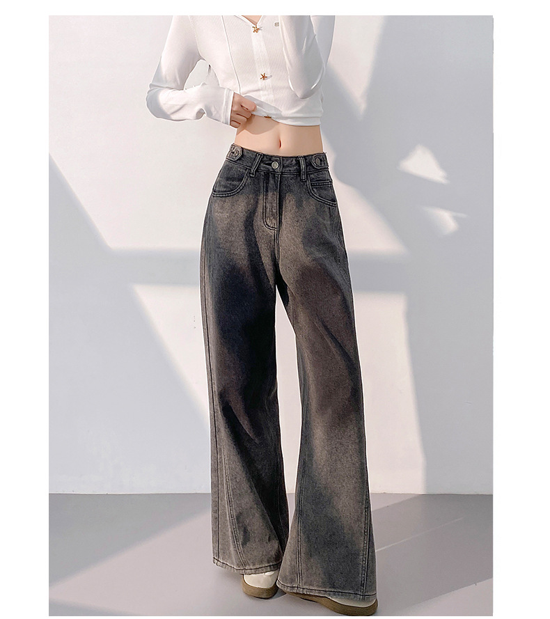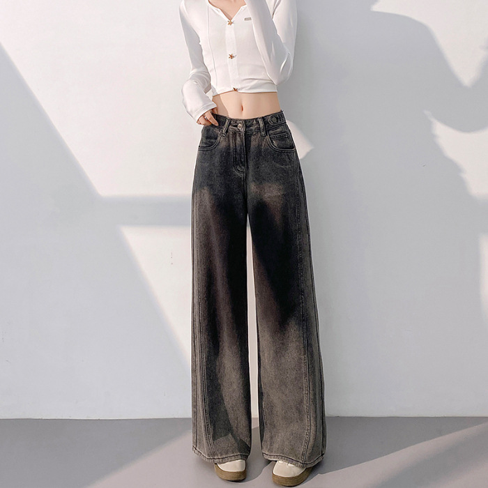 봄 2025 새로운 미국 스타일 레트로 틈새 그라디언트 곡선 디자인 센스 청바지 여성용 스트레이트 바지스토어 가기