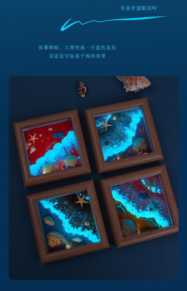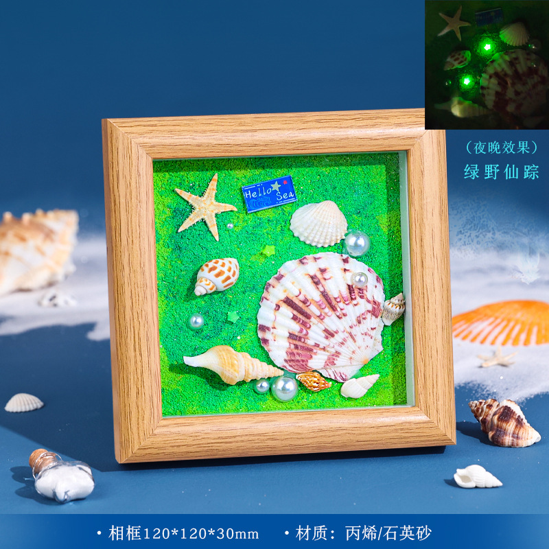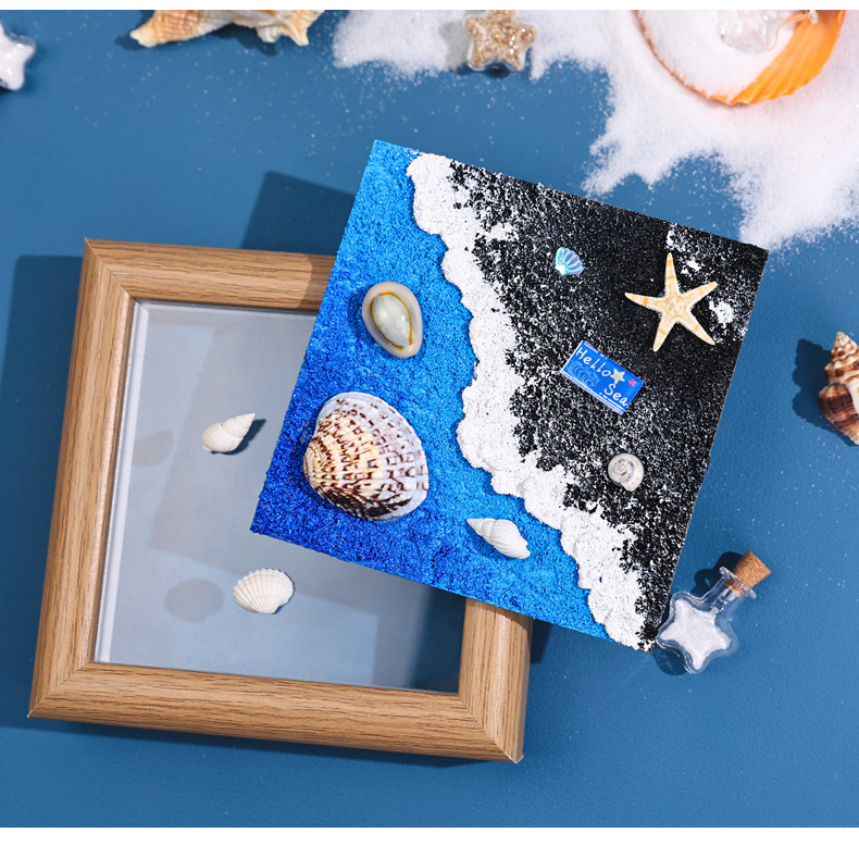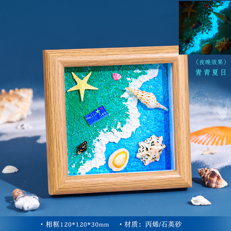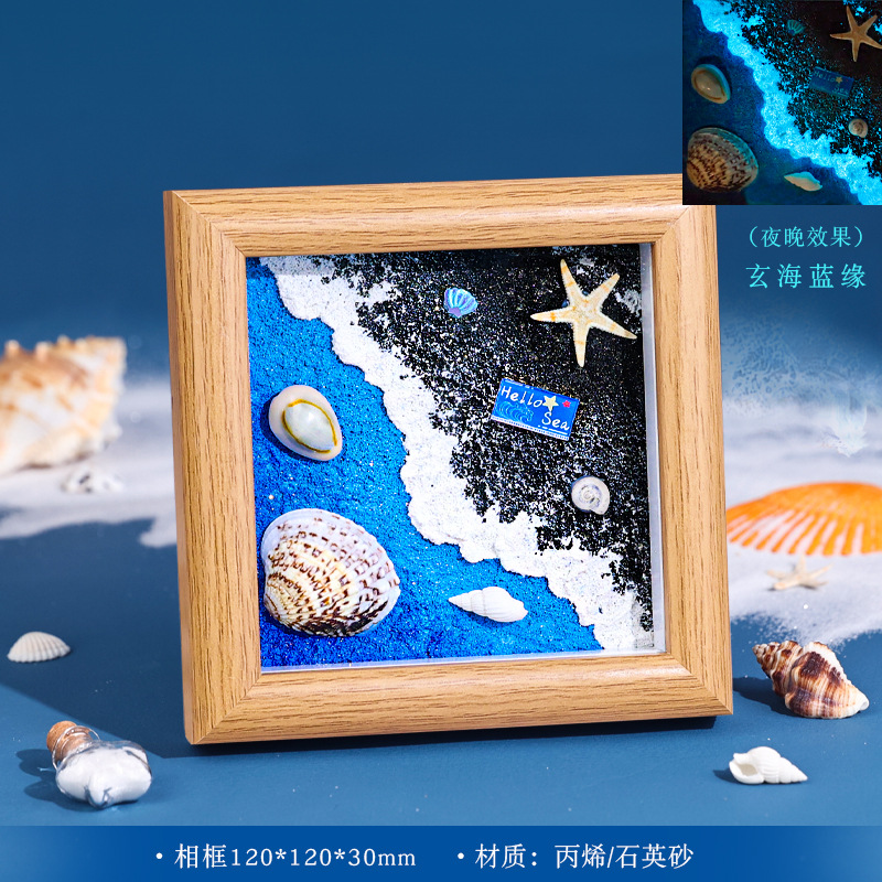 사진 프레임 빛나는 비치 쉘 질감 그림 Ins 국립 해안 도시 관광 기념품 창조적 인 수제 모래 그림스토어 가기