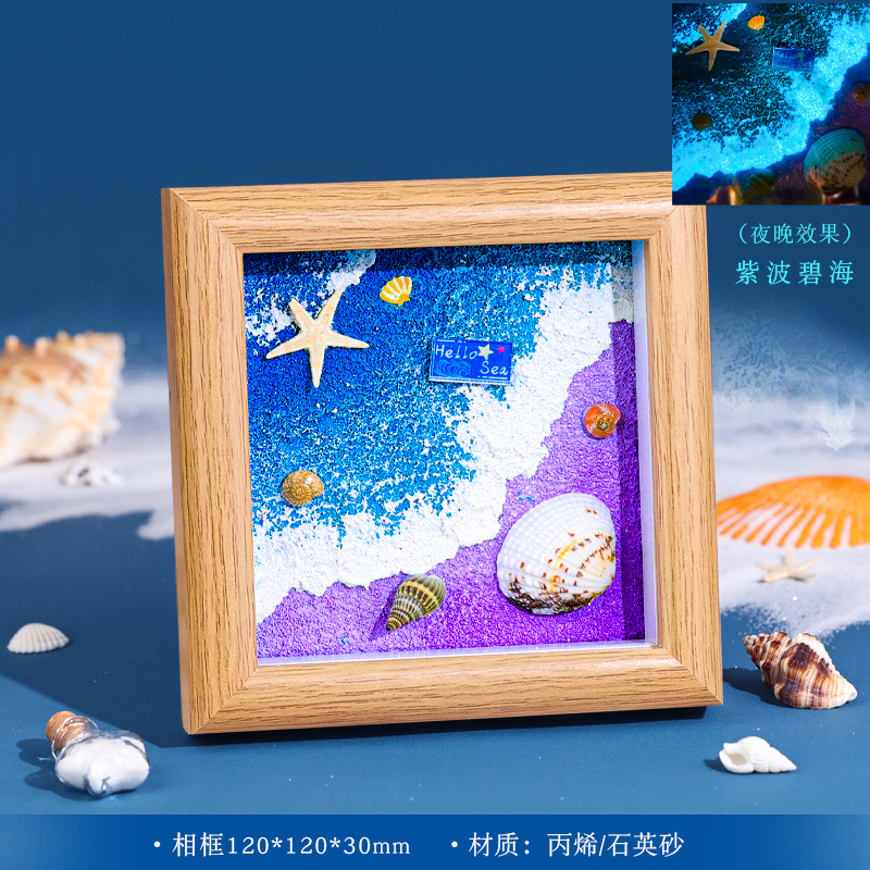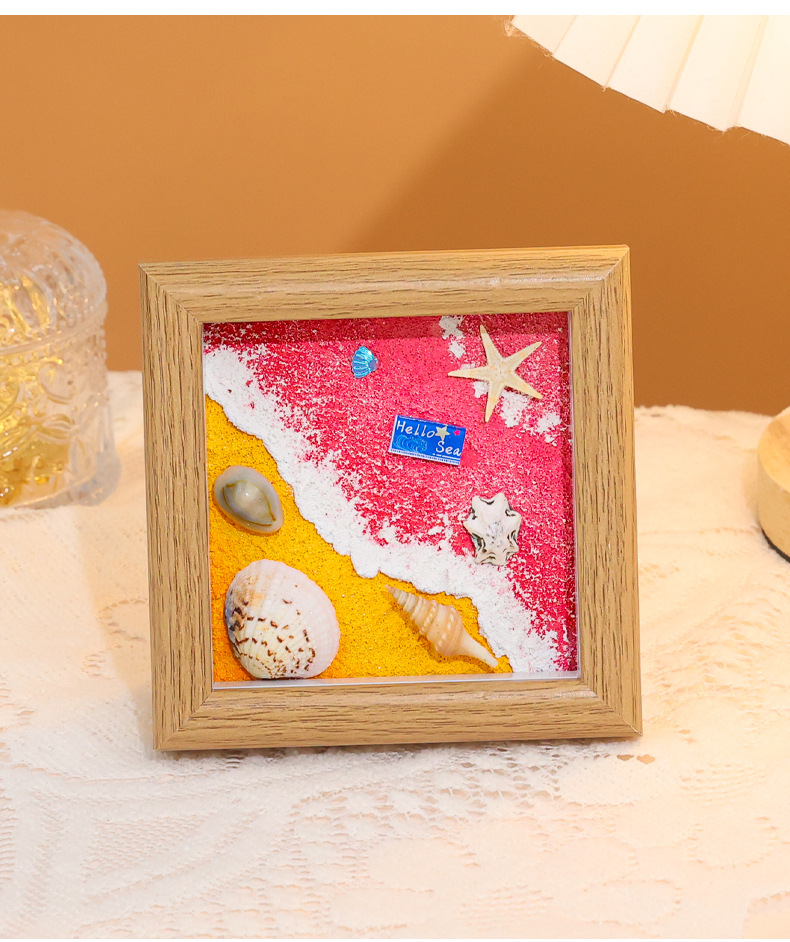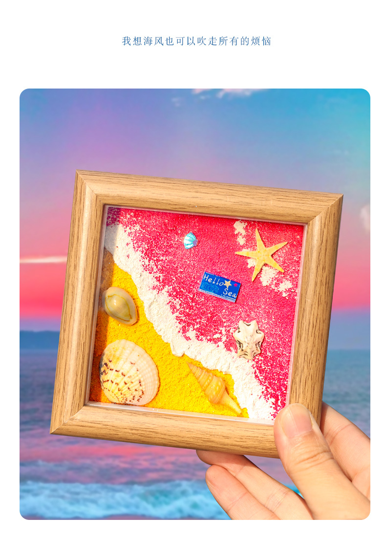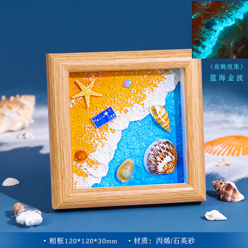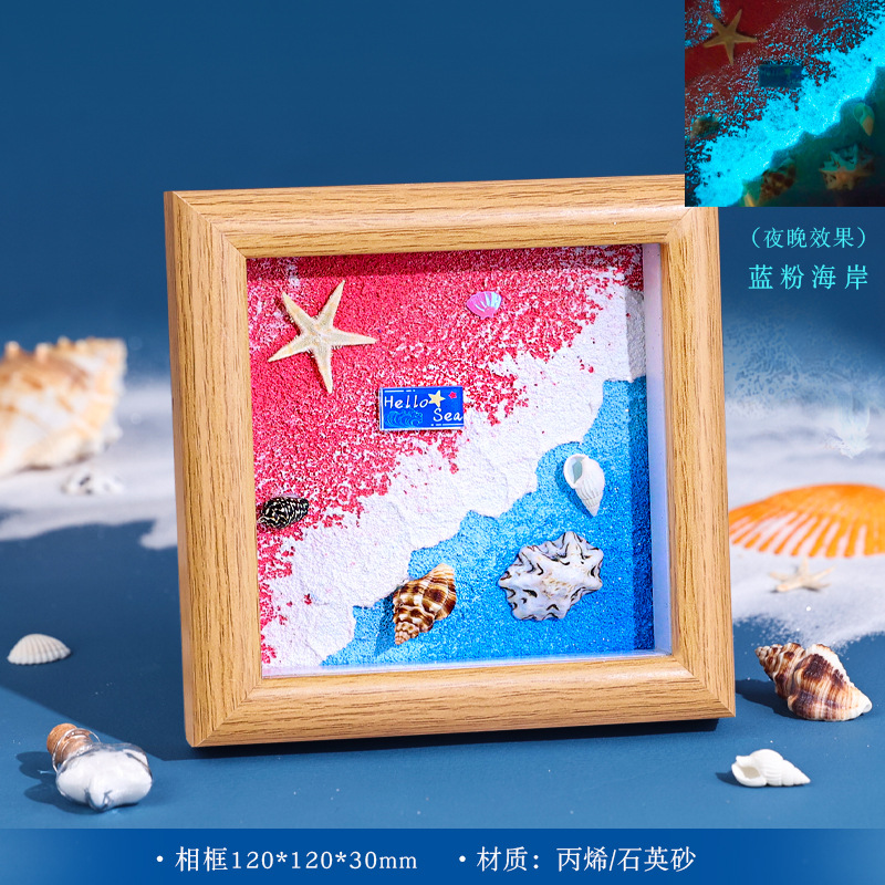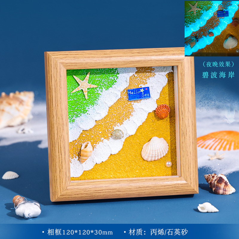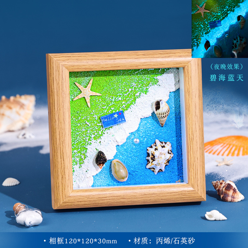 사진 프레임 빛나는 비치 쉘 질감 그림 Ins 국립 해안 도시 관광 기념품 창조적 인 수제 모래 그림