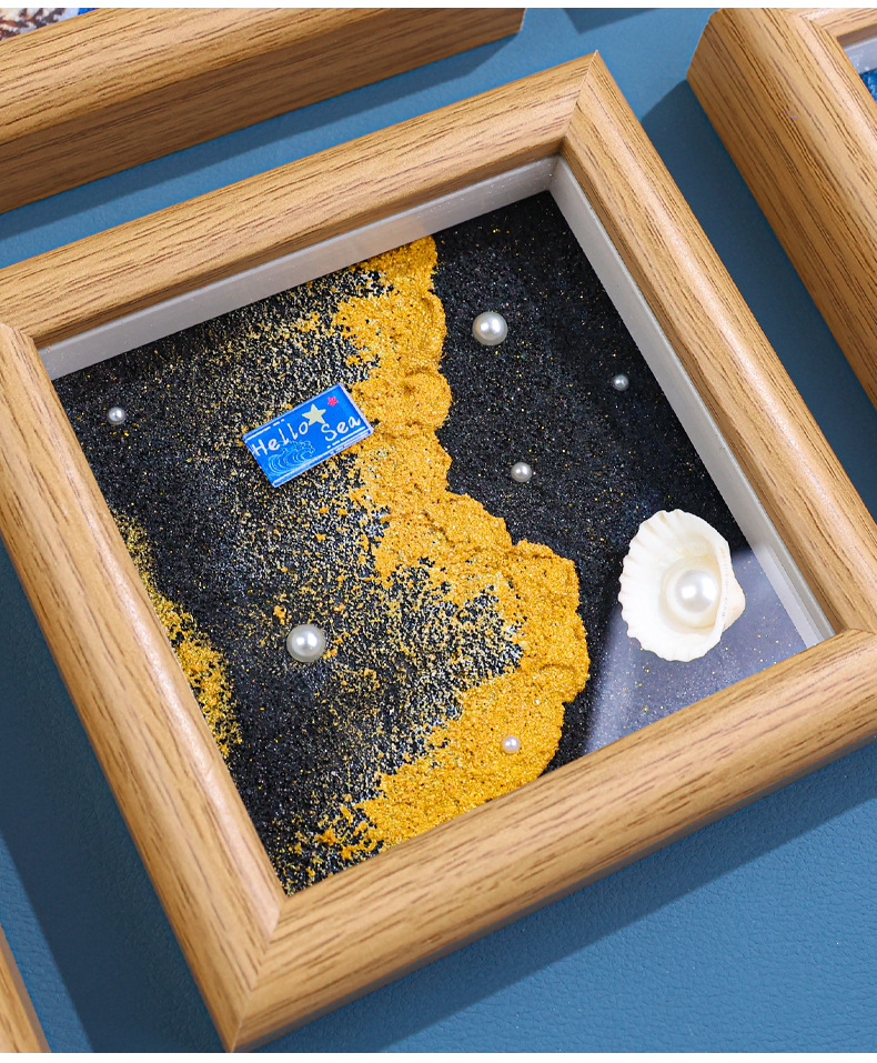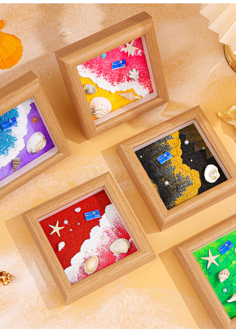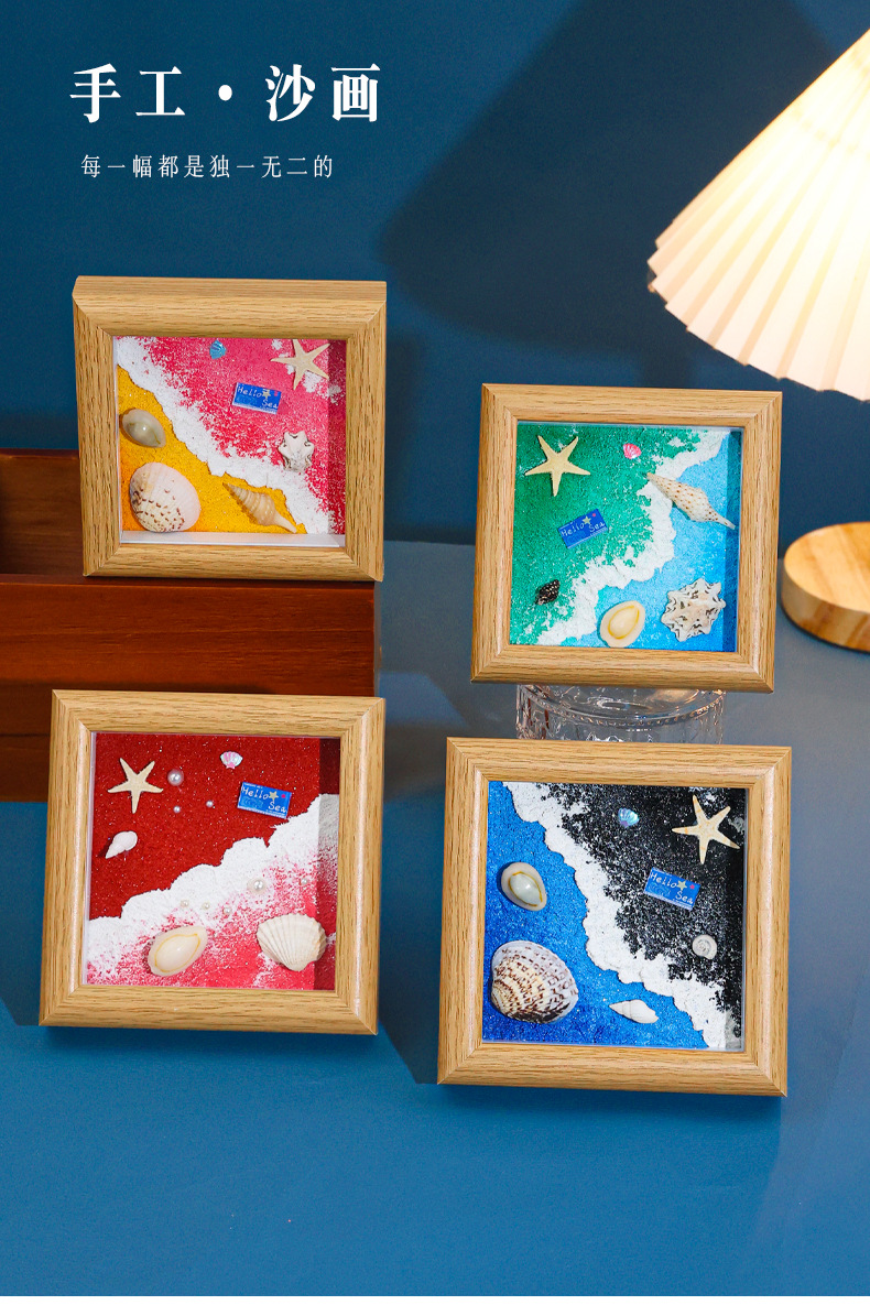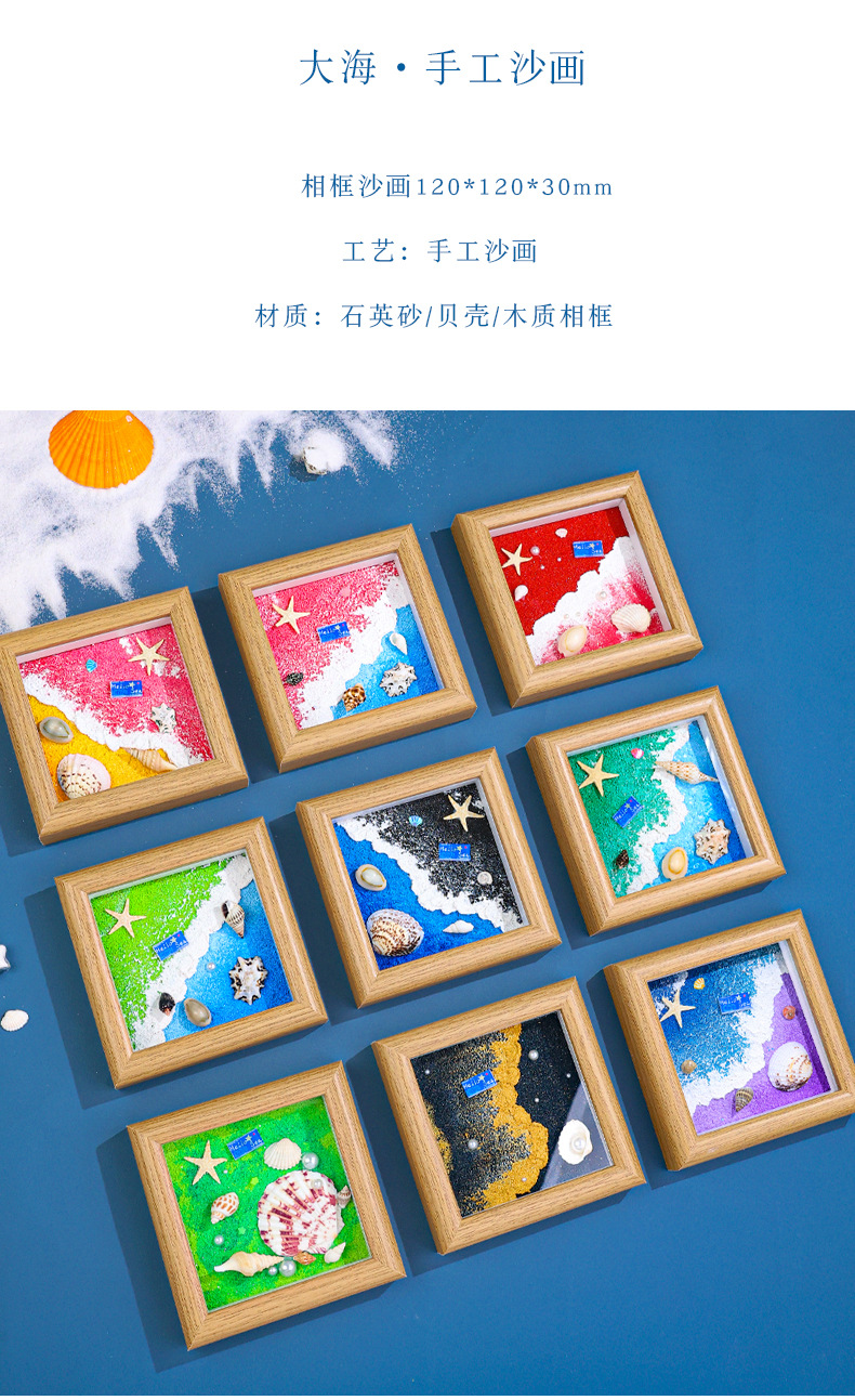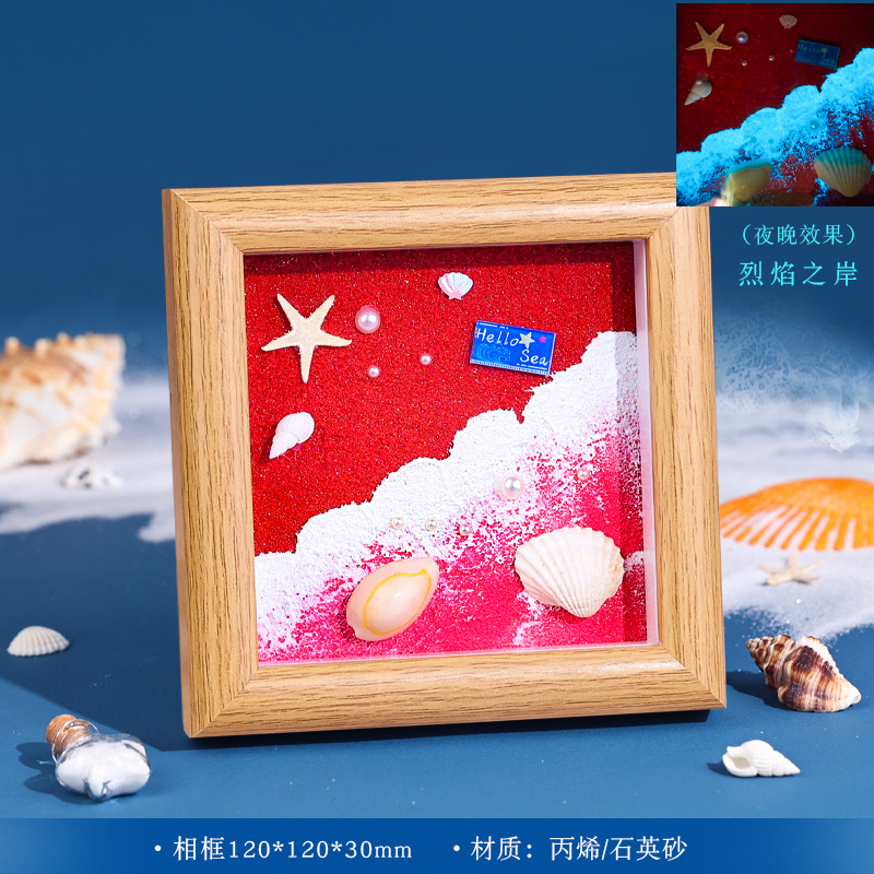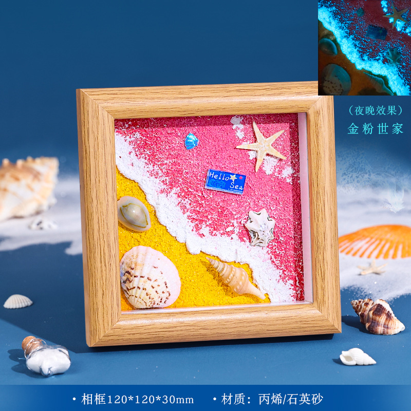 사진 프레임 빛나는 비치 쉘 질감 그림 Ins 국립 해안 도시 관광 기념품 창조적 인 수제 모래 그림