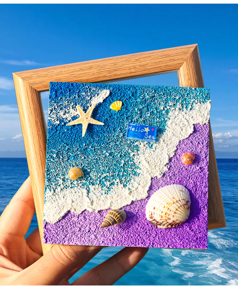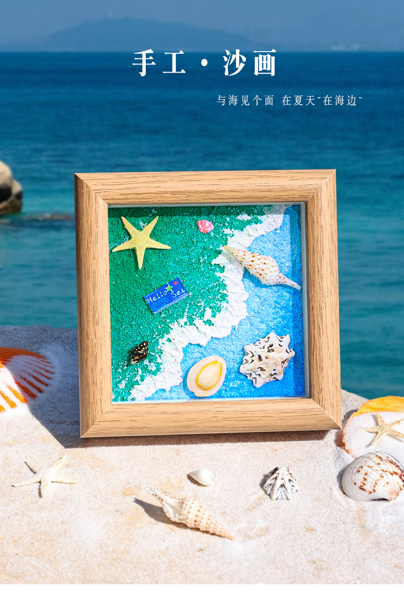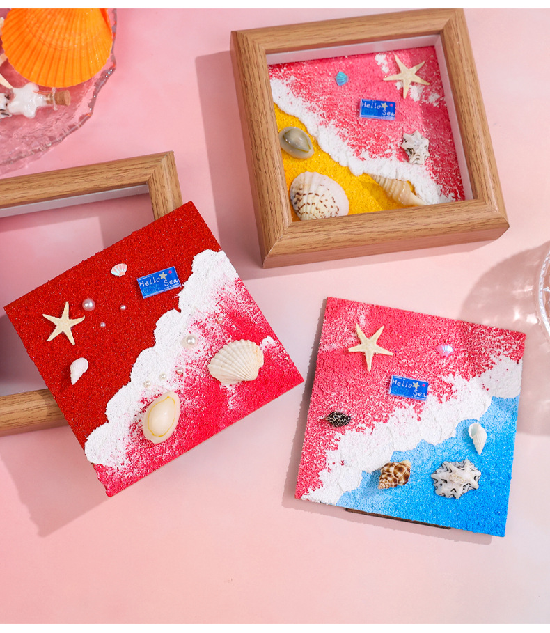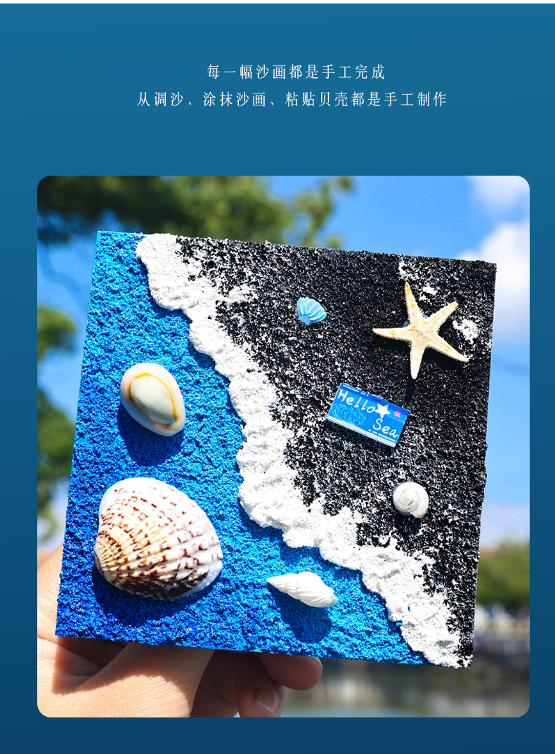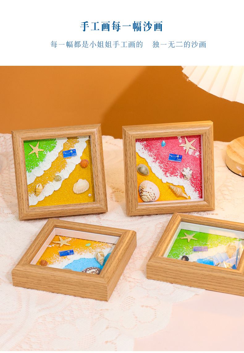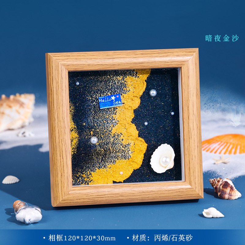 사진 프레임 빛나는 비치 쉘 질감 그림 Ins 국립 해안 도시 관광 기념품 창조적 인 수제 모래 그림