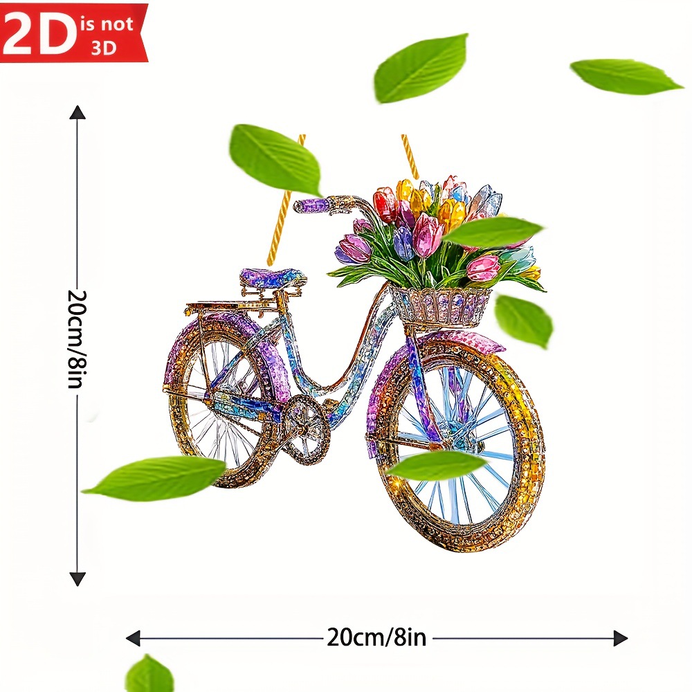 보헤미안 스타일의 다이아몬드 자전거와 튤립, 모조 가죽에 1 조각, 2D 모조 가죽 사인