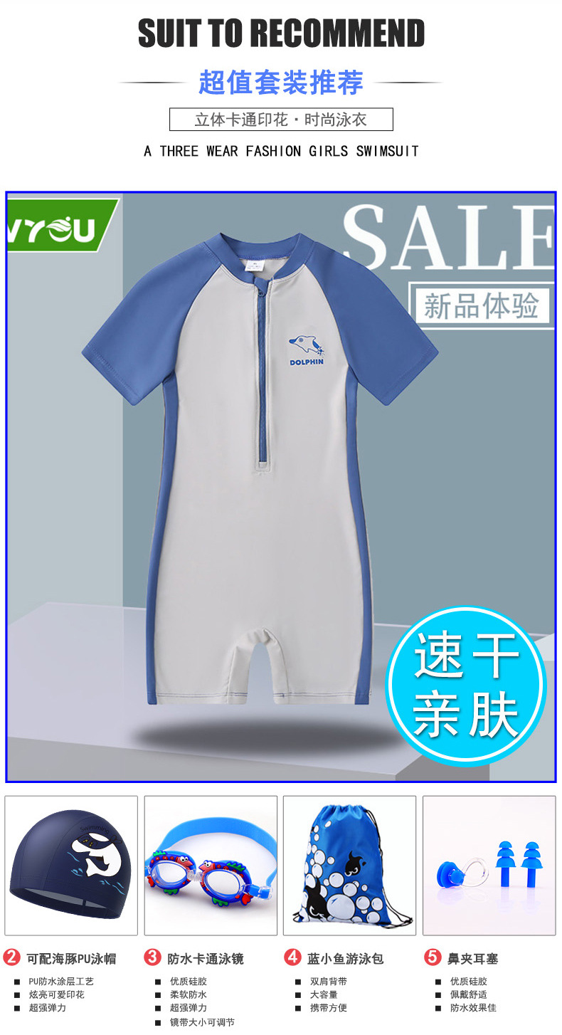 • 5315 남아용 원피스 + PU 모자 + 수영 고글