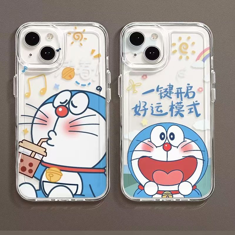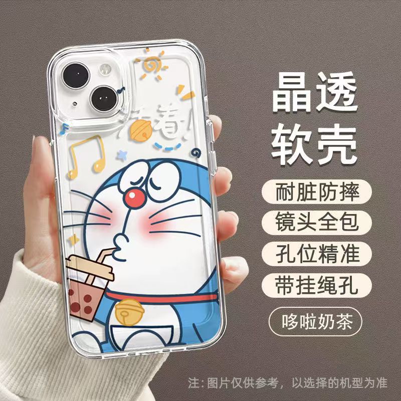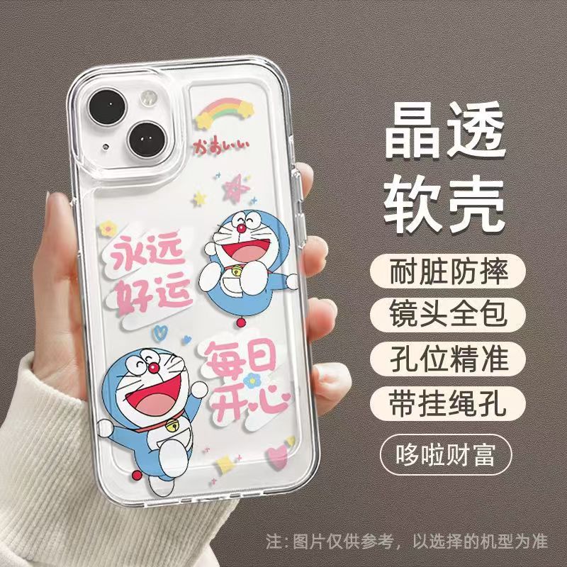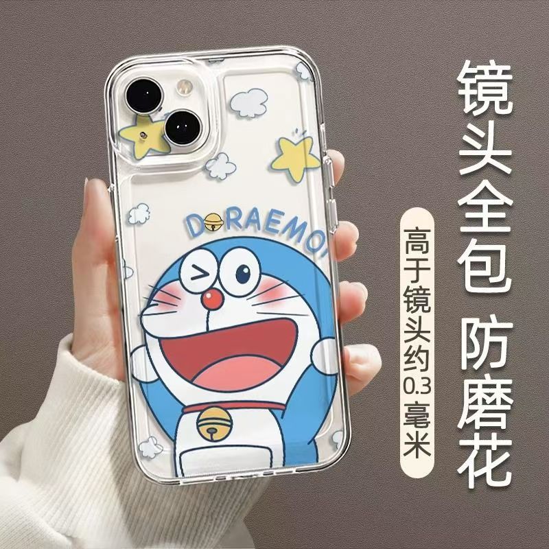징글 고양이 iphone16promax 전화 케이스 간단한 두꺼운 투명 애플 15 드롭 방지 만화 도라에몽